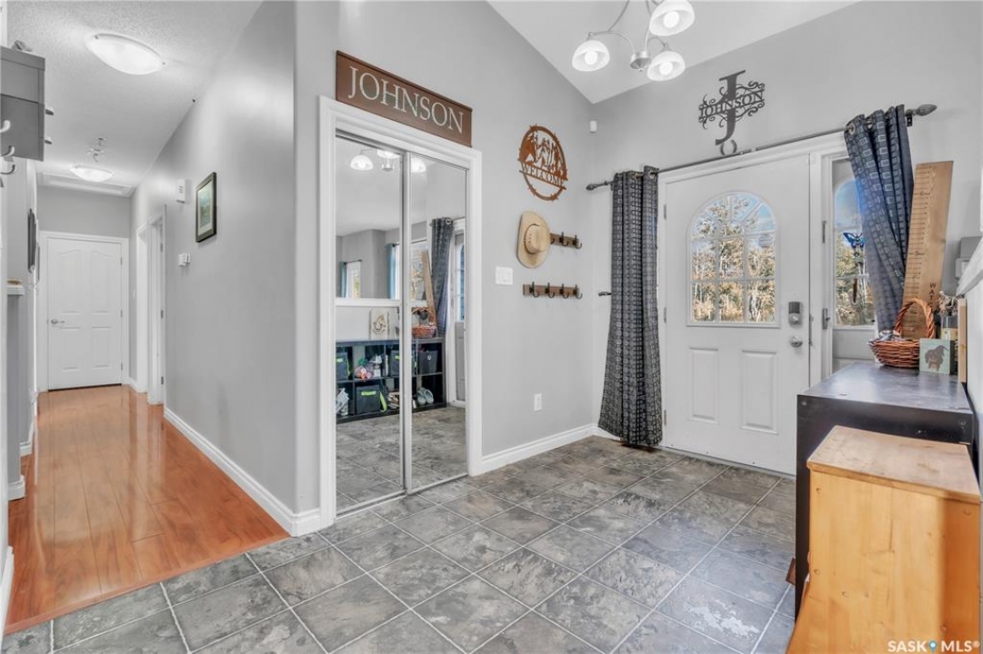 This 2008 home, boasting almost 1700sqft of main-floor living space and held by its original owner, is perfectly situated on ten acres of unparalleled privacy. With three bedrooms and two full bathrooms (plus two more bedrooms and another bathroom roughed in downstairs), step inside to an expansive open-concept layout designed for both effortless family gatherings and grand entertaining. The thoughtfully designed kitchen features sleek stainless steel appliances, rich maple espresso cabinets, and copious storage, with garden doors leading to a generous deck two tired deck. The main level hosts the tranquil primary bedroom with a walk-in closet and a large ensuite showcasing a luxurious jetted tub, along with two additional bright bedrooms, and a practical main-floor laundry room/mudroom. The basement offers exciting potential with two bedrooms and a bathroom roughed-in, ready for your custom touches making this home have the potential of a 5 bedroom/3 bathroom home. You will be impressed by the massive, dedicated hot tub room that has access from the house, featuring 20-foot ceilings, which also provides access to the attached three-car heated garage. Comfort is guaranteed year-round with in-floor heating in the garage, hot tub room, and basement, plus central air conditioning, all efficiently supported by propane heat, a septic tank and open discharge, a drilled well, and a recently installed (2023) reverse osmosis system for pristine water.