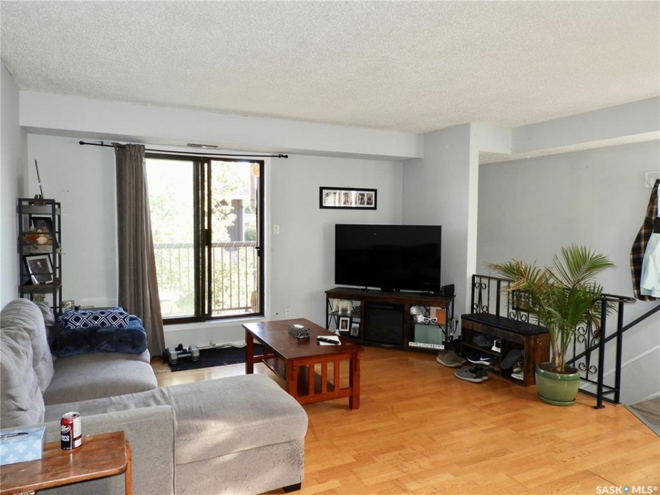 Here is your opportunity to own a two bedroom townhouse style condo centrally located in Martensville. There is a dedicated parking (2) in front of the unit plus visitor parking. The unit is located on upper floor and is open concept with a nice sized living room which opens into the kitchen and dinning space. The kitchen has ample cabinets and counter space. Patio doors lead to the balcony overlooking the courtyard with lots space for bbq & chairs to enjoy the space. The home also has 2 good sized bedrooms an additional den separate laundry room with ample space for additional storage and a 4 piece bath.
