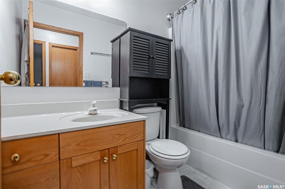 Welcome to 4 Willow Place in the quiet community of Hepburn. This fully developed home was built in 1999 and offers 1200 sq.ft. on main level consisting of 3 bedrooms, 3 pce ensuite off Master bedroom plus two other bedrooms on main. The lower level offers a very spacious family room plus there are an additional two bedrooms in the lower level as well as a 3 piece bathroom. The double attached garage is 22 x 22 and offers a paved driveway. The yard is quite large and well treed with spruce trees across the back and there is a storage shed included. Additionally the fridge, stove and dishwasher is included plus there is a garburator. If you are seeking a more affordable home in a quiet community, be sure to reach out to your agent to view.