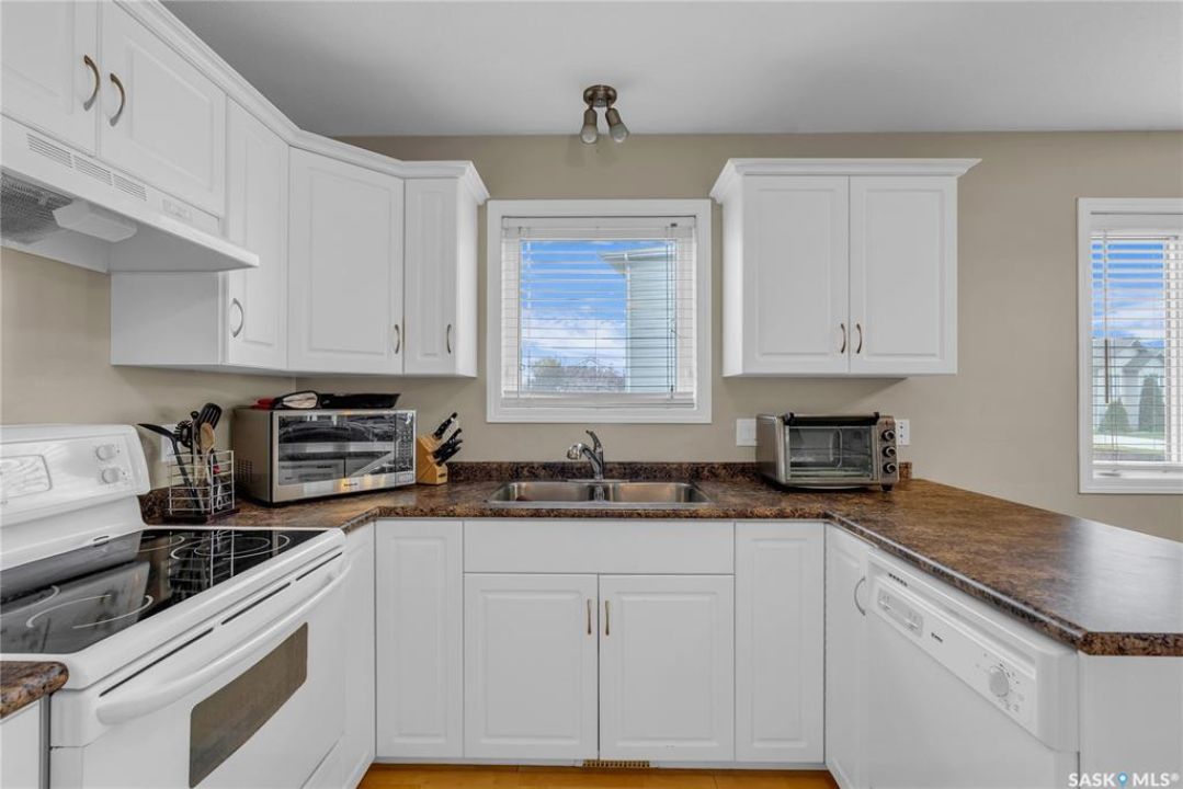 Welcome to 403 Rutherford Cres in Saskatoon's Sutherland community! This 1,278 sq ft 2 storey semi-detached home is fully developed and offers 4 bedrooms, 2 bathrooms, single detached garage and an open concept main floor. Other key features: all appliances, washer, dryer, central air conditioning, underground sprinklers, and is fully fenced. There is a walk way beside the lot and also no backing neighbours, so this yard is very private. Great location, close to University so would also make a great investment property or for the kids to go to school! Don't miss out!