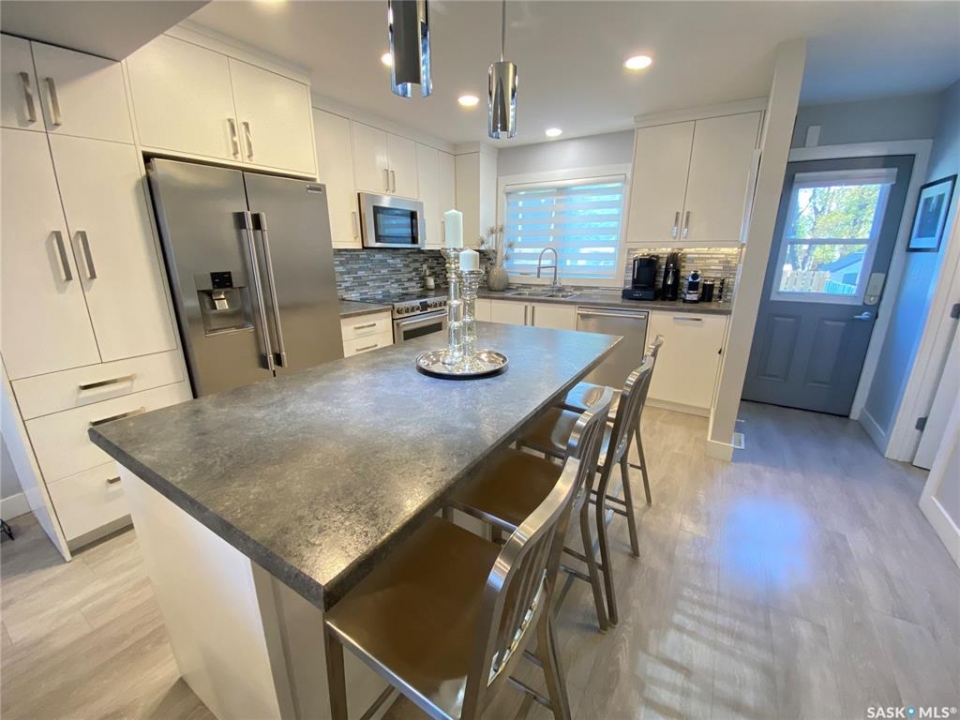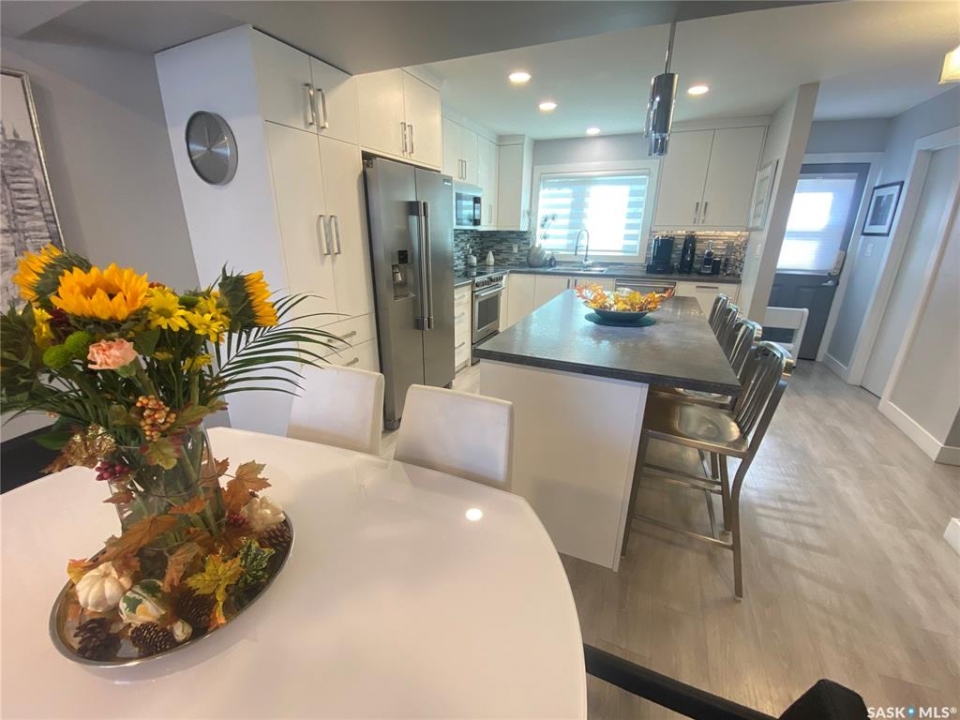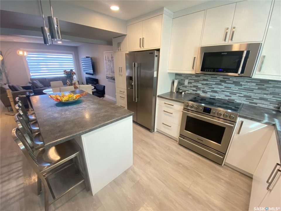 An amazing, immaculate home is ready for your family. This 1080 sq ft townhouse received a full renovation in 2017. A complete makeover from the windows to the flooring in this pristine home. A SVEINCO custom kitchen package with loads of cabinets and countertop space along with an oversized sit-up island complete will a full line up of stainless-steel appliances including a bar fridge in the island. The dining area flows off the kitchen and adjoins to your cozy living room space. A renovated 2-piece bathroom off the kitchen completes the main floor. Heading up to the second floor, the primary bedroom allows for king-sized furniture. Down the hallway 2 additional bedrooms which will fit queen and double sized comfortably. The 4-piece bathroom completes the second floor. Downstairs the cozy rec room area to enjoy your favorite show or the kids to have their own play space. Laundry is in the utility room, which is home to your upgraded high efficient furnace, brand new water heater. The home also contains a water softener and central air conditioning. The backyard is completely fenced for the kids and fur babies to enjoy. Storage shed for the seasonal items along with a beautiful maintenance free landscape, firepit area and deck to enjoy the BBQ season. Located a short walk to the hospital or multiple elementary schools in the area. If you're looking for a move in ready with no maintenance this is your home. You will love it!