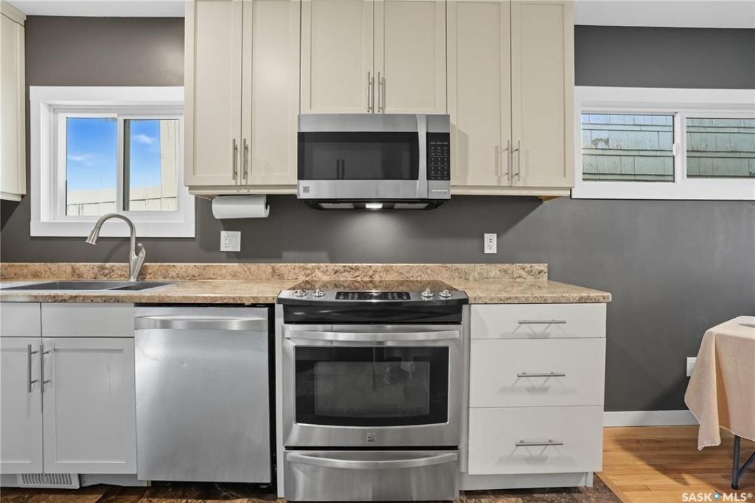 A Wonderful First-Time Buyer Opportunity! This inviting character home has been thoughtfully updated with many of the major improvements already taken care of. Recent upgrades include the sewer line replacement with a back-flow valve, a refreshed bathroom with stylish new flooring and even a laundry chute in the master bedroom — giving you peace of mind as you move in. Step through the bright and airy front porch, a cozy spot to enjoy sunny days with your morning coffee or an evening wind-down. Inside, you'll find a practical layout with modern appliances and plenty of potential to make the space your own. Out back, a heated and insulated double detached garage provides excellent year-round parking and storage, adding extra value and convenience. With its blend of charm, upgrades, and opportunity to personalize, this home is move-in ready and waiting for new owners to add their own finishing touches.