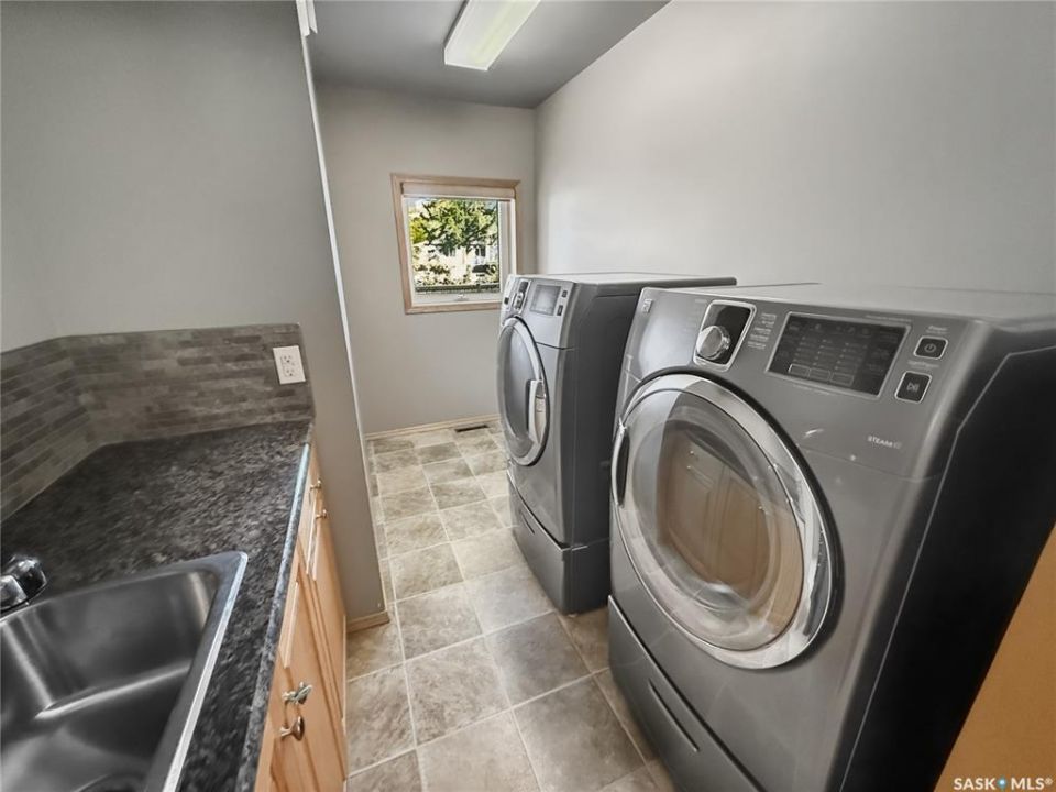 Discover the perfect blend of city convenience & country charm in this 1,342 sq. ft. bungalow on a sprawling 100' x 130' double lot in Swift Current's desirable southwest area. Backing onto open pasture, it offers the feel of acreage living—right on the edge of the city! Originally built in 1982 & moved into the city on a new foundation in 2006, this home saw extensive updates then & continues to shine today. Extremely well built W super-thick exterior walls for insulation & sound barrier, it's been upgraded w Hardie Board siding accented by stone, PVC windows, brand-new shingles (2024), & a spacious dble concrete drive. Step inside to a sunken living room w a gas fireplace, open to the kitchen/dining area showcasing abundant cabinetry, pull-out shelving, stainless steel appliances (incl. new stove 2023), & prairie views. The main floor offers 3 bedrooms, including a large primary w double closets, 4-pc bath, & 2-pc laundry w a sink. A large mudroom leads to the backyard oasis: fully fenced w a composite deck, natural gas BBQ hookups on both sides, manicured lawn front & back w UG sprinklers on timers, natural gas firepit, xeriscaping, shed, & a 2023 hot tub (negotiable). The lower level features an oversized family/rec room w an electric fireplace, a spacious bedroom, & a luxurious 4-pc bath w air-jetted soaker tub & dble shower. A huge storage room boasts an expansive bank of cabinets (incl. large gun cabinet), plus a mechanical room loaded w upgrades: air exchanger, water softener, carbon filter, RO system, central vac & sump pump. The oversized dble heated garage/mancave (gas heat, added within 5 yrs) includes a workbench nook. Tons of off-street parking including RV parking. Quick possession available—this move-in-ready gem is packed w value!