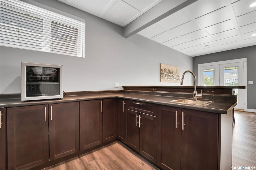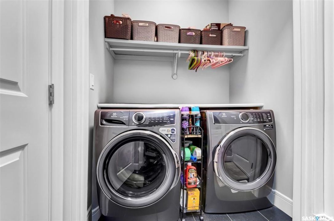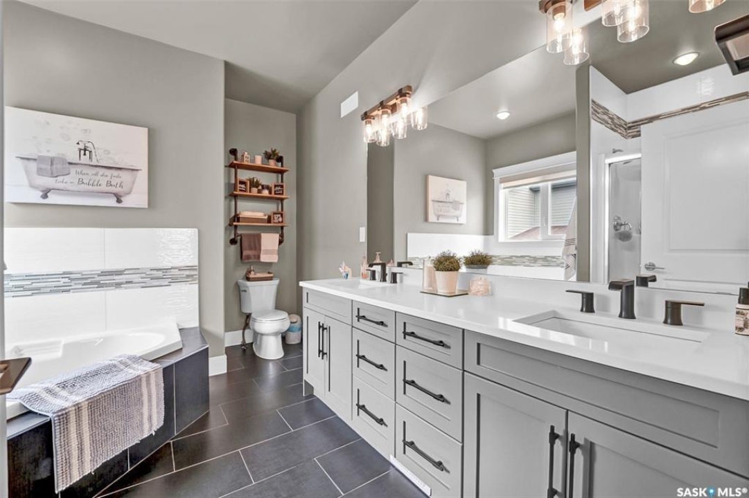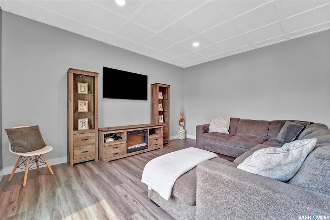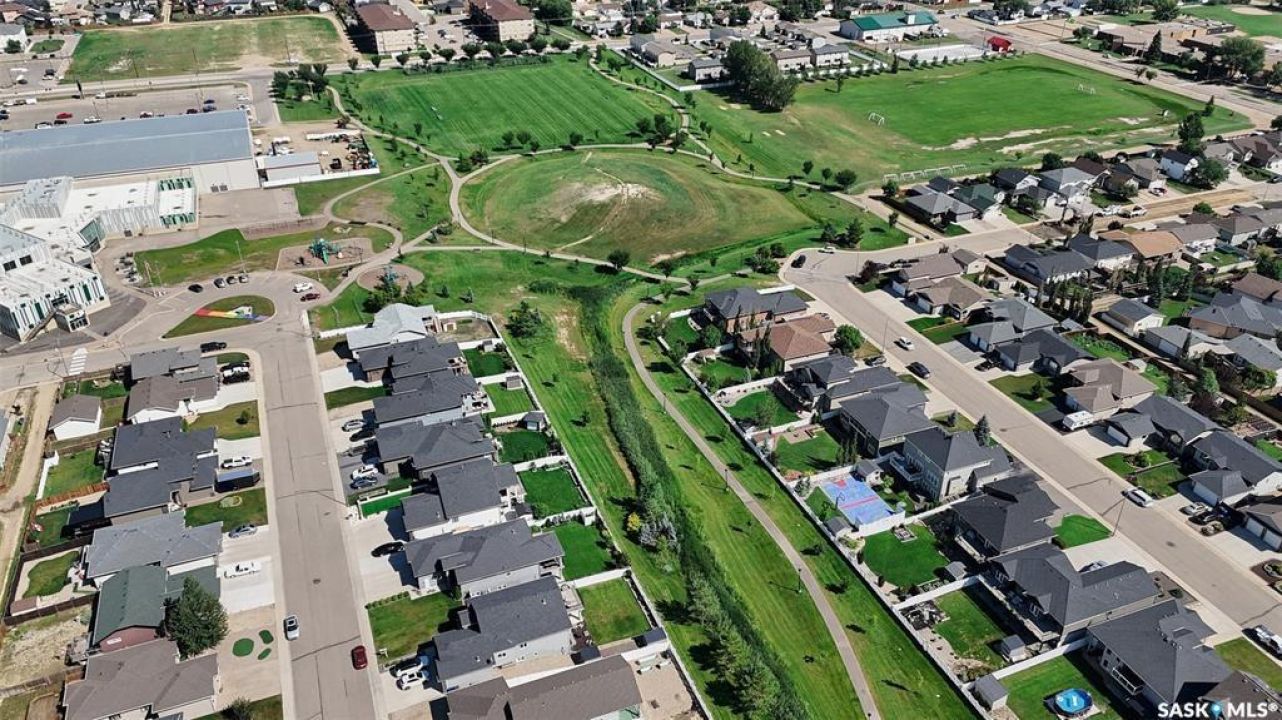 Welcome to this stunning walkout bungalow backing onto the park in Warman, where over $60,000 in recent upgrades have elevated this home into something truly special. From the moment you step inside, you'll be impressed by the spacious layout, elegant finishes, and natural light throughout. The main floor features a grand front entrance, a high-end kitchen with an oversized island, and a warm, inviting living room with a gas fireplace. The large primary bedroom includes a luxurious five-piece ensuite, while a second bedroom, dedicated office space, main floor laundry, and a breathtaking deck overlooking the park complete the level. The walkout basement offers a spacious family room, games area with a bar, two generous bedrooms, and a full bathroom. The beautifully landscaped backyard includes a lower patio, stonework, and two storage sheds. A heated double garage with 10-foot ceilings adds practicality to the home's charm. Upgrades include luxury vinyl plank flooring in the basement, new upgraded carpet on the main floor, solar-block tinted windows in the main floor living room,right side patio door as well as the basement family room right side, a custom front door, refreshed master bath with new taps and paint, front and lower decks, brick flowerbeds, and custom blinds in the basement. With its thoughtful design, serene park views, and turn-key updates, this home is the perfect blend of comfort and elegance ready for you to enjoy. This beautiful home is close to the schools, Warman community centre, and all other amenities.