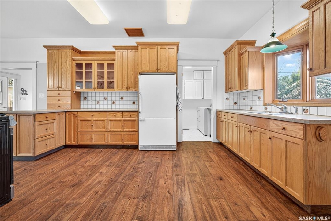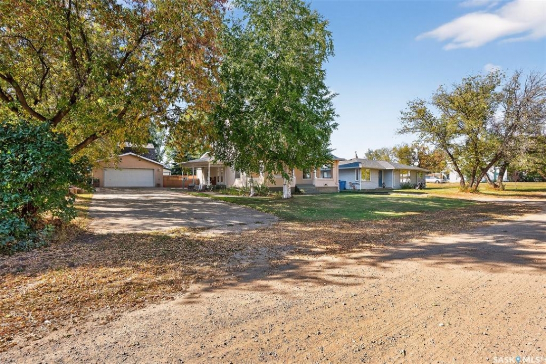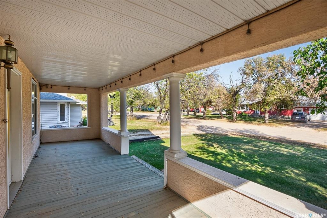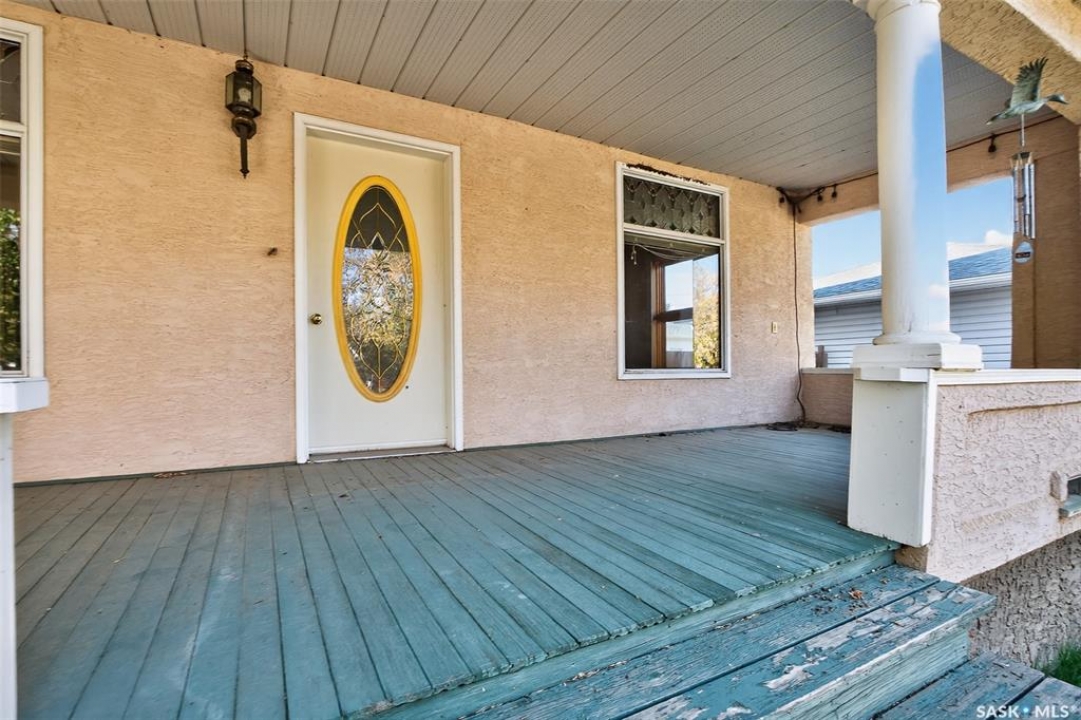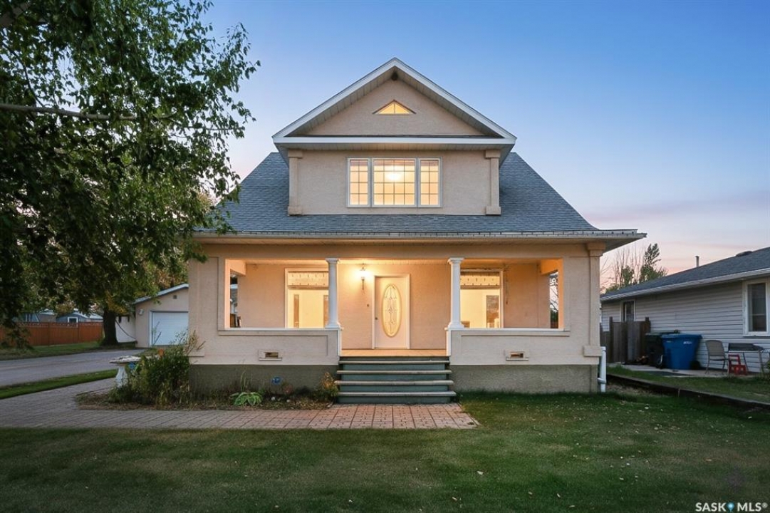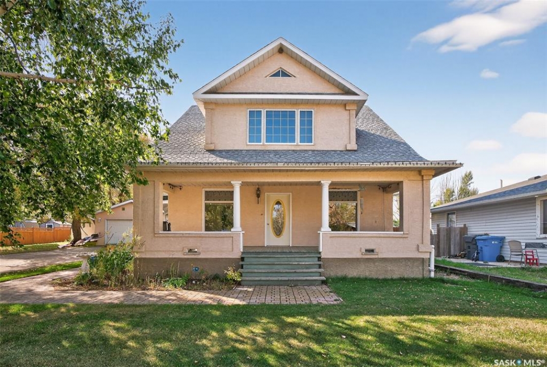 Are you looking for a perfect family home? This beautiful 2 story character home is full of charm and history! Sitting on a huge triple lot you are sure to be impressed as you pull up. Heading up the front you are greeted by a stunning covered front porch - the perfect place for your morning coffee. Inside we find a large sitting room with the classic pocket doors and high 9 foot ceilings throughout the main floor. Near the front of the home we also find a spacious office that could be used as a bedroom if needed. Next we find a spacious kitchen boasting lots of oak cabinetry, countertops, a gas range and a huge pantry with main floor laundry inside. Right off the kitchen we find a formal dining room with patio doors leading to your second covered deck! Off the back of the home we find a huge living room with vaulted ceilings and a 3 piece bathroom! Heading upstairs we have 3 bedrooms and a 3 piece bathroom with a beautiful clawfoot tub. The primary bedroom is massive, boasting vaulted ceilings and "his and hers" closets. The undeveloped basement has lots of space for storage and utilities. Outside we find a paved driveway with parking for 4 cars plus a 22'x28' double detached garage with a bonus heated barn style attached workshop off the back which is 16'x24' plus a loft - this is sure to be every guys ultimate man cave. The huge yard has mature trees, a fully fenced section and so much space for kids or pets! This would be an exceptional family home! If you're looking for small town living, this is it! Mortlach is just 25 minutes from Moose Jaw and offers a K-12 school! Quick possession is available! Reach out today to book your showing!