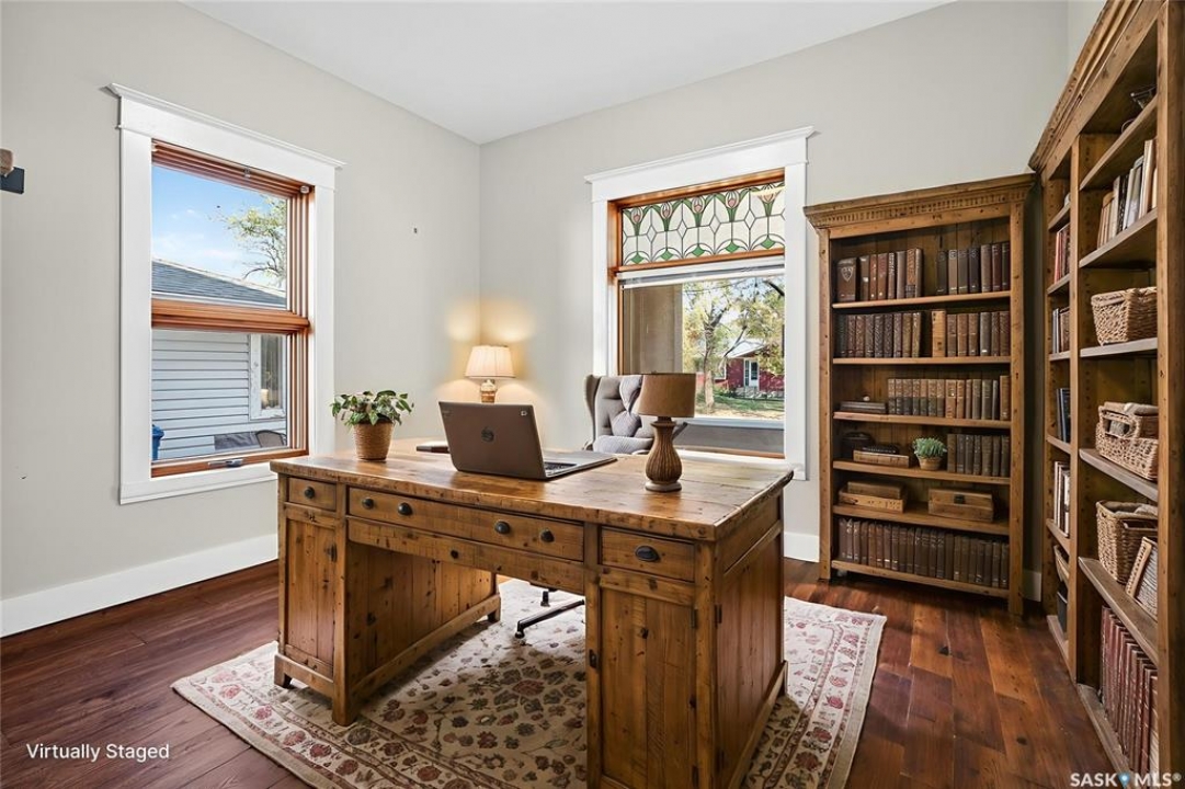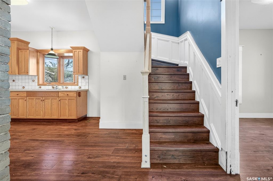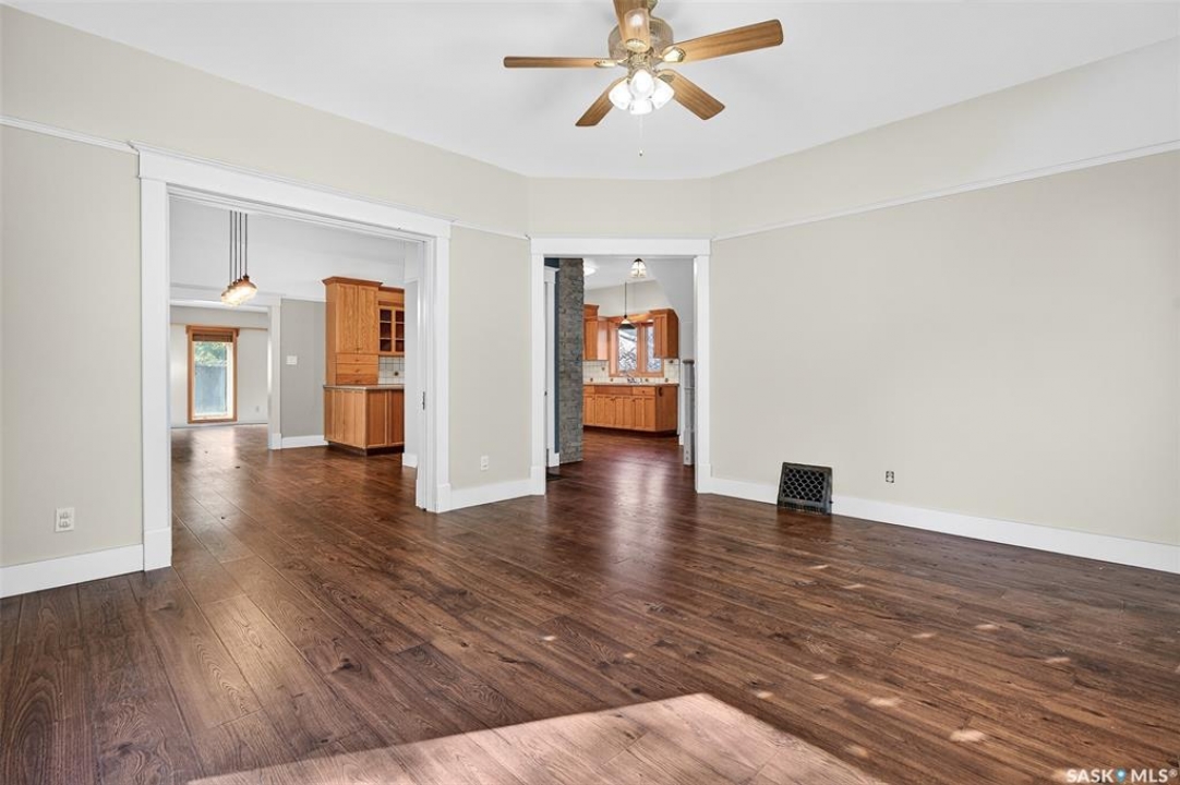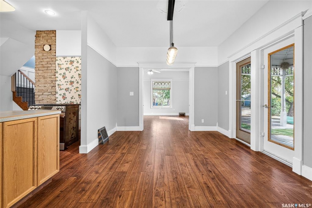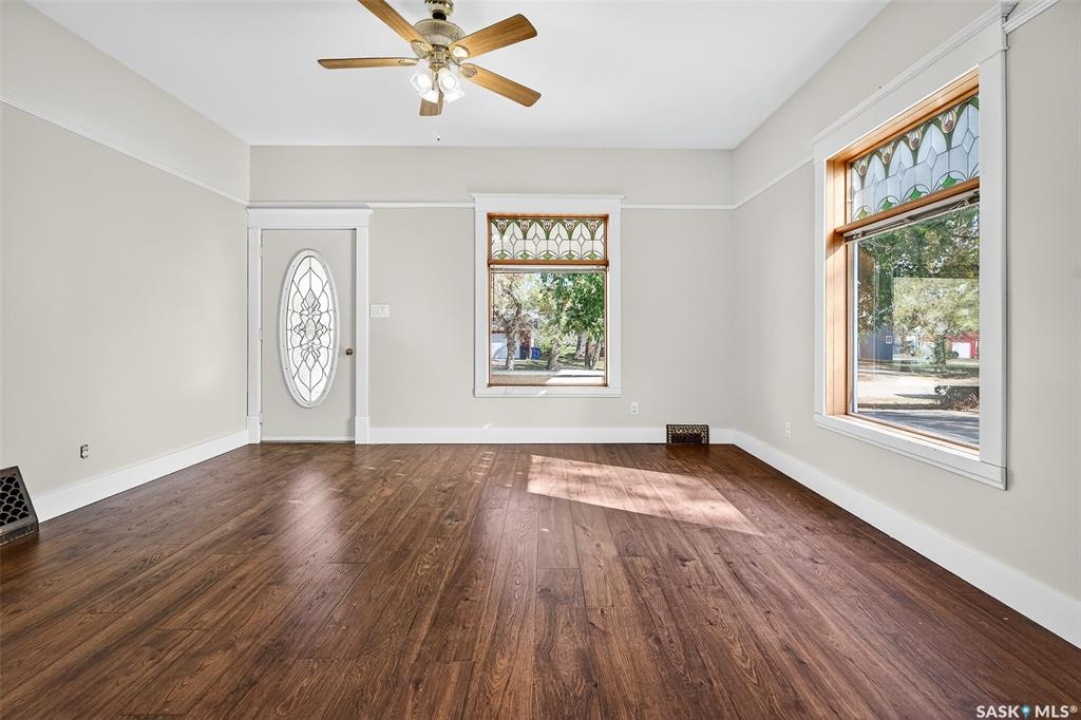 Are you looking for a perfect family home? This beautiful 2 story character home is full of charm and history! Sitting on a huge triple lot you are sure to be impressed as you pull up. Heading up the front you are greeted by a stunning covered front porch - the perfect place for your morning coffee. Inside we find a large sitting room with the classic pocket doors and high 9 foot ceilings throughout the main floor. Near the front of the home we also find a spacious office that could be used as a bedroom if needed. Next we find a spacious kitchen boasting lots of oak cabinetry, countertops, a gas range and a huge pantry with main floor laundry inside. Right off the kitchen we find a formal dining room with patio doors leading to your second covered deck! Off the back of the home we find a huge living room with vaulted ceilings and a 3 piece bathroom! Heading upstairs we have 3 bedrooms and a 3 piece bathroom with a beautiful clawfoot tub. The primary bedroom is massive, boasting vaulted ceilings and "his and hers" closets. The undeveloped basement has lots of space for storage and utilities. Outside we find a paved driveway with parking for 4 cars plus a 22'x28' double detached garage with a bonus heated barn style attached workshop off the back which is 16'x24' plus a loft - this is sure to be every guys ultimate man cave. The huge yard has mature trees, a fully fenced section and so much space for kids or pets! This would be an exceptional family home! If you're looking for small town living, this is it! Mortlach is just 25 minutes from Moose Jaw and offers a K-12 school! Quick possession is available! Reach out today to book your showing!