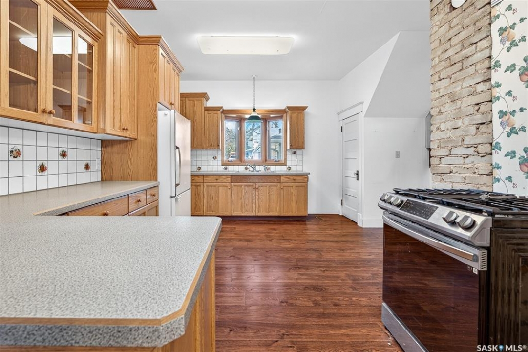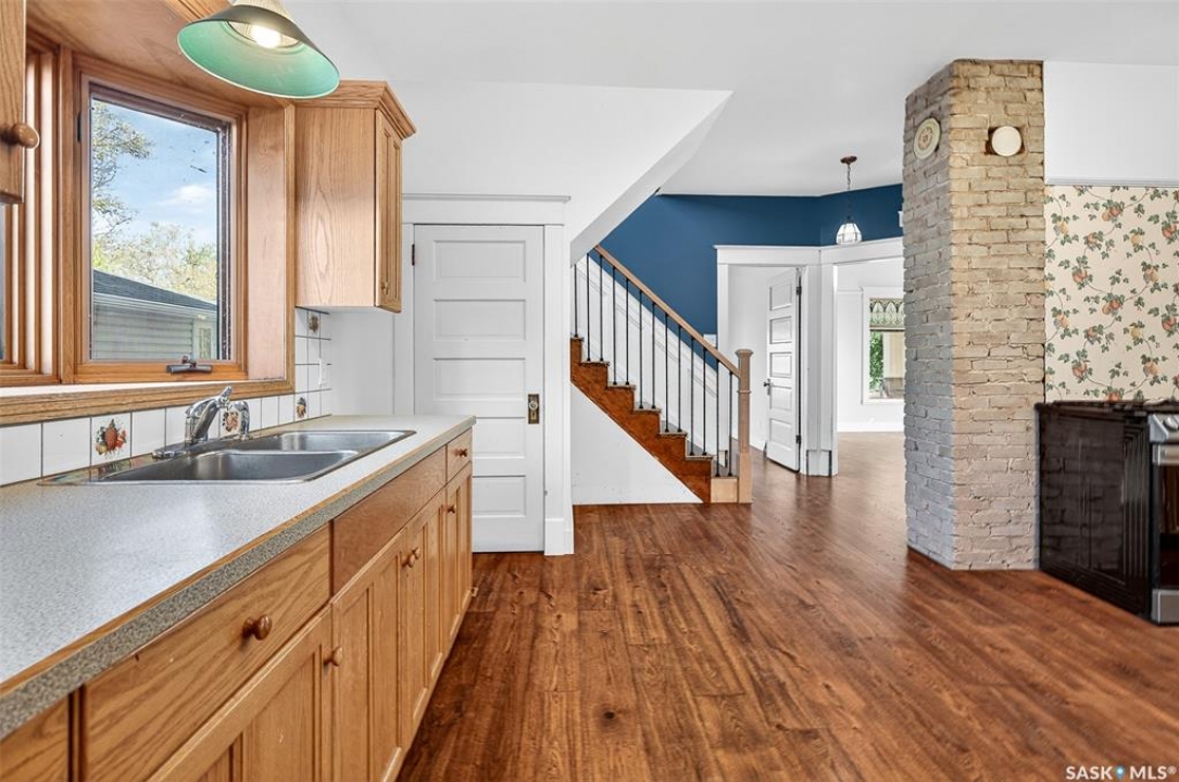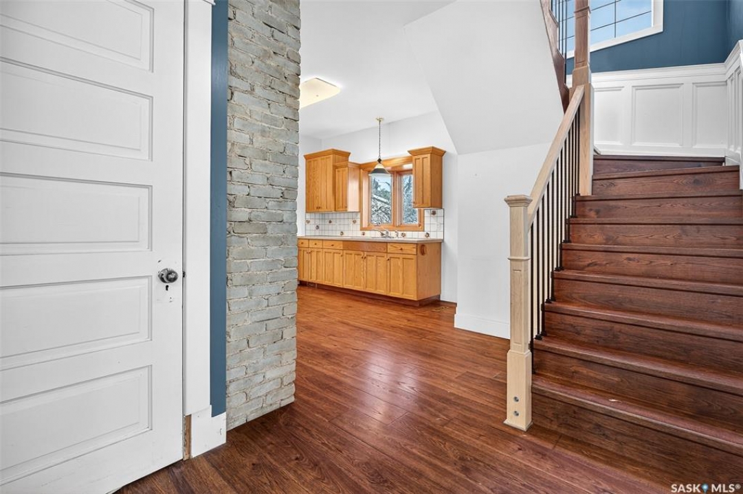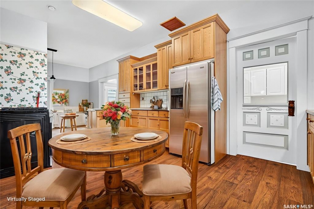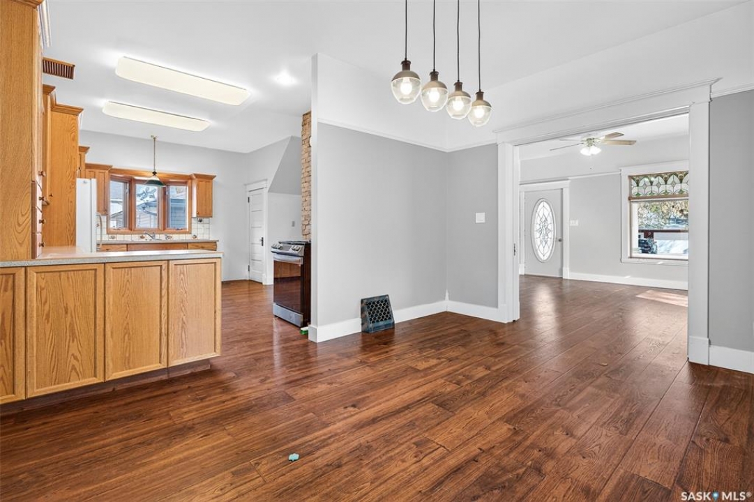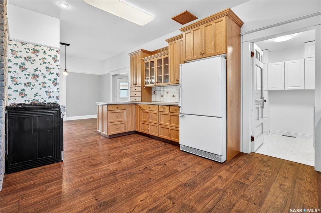 Are you looking for a perfect family home? This beautiful 2 story character home is full of charm and history! Sitting on a huge triple lot you are sure to be impressed as you pull up. Heading up the front you are greeted by a stunning covered front porch - the perfect place for your morning coffee. Inside we find a large sitting room with the classic pocket doors and high 9 foot ceilings throughout the main floor. Near the front of the home we also find a spacious office that could be used as a bedroom if needed. Next we find a spacious kitchen boasting lots of oak cabinetry, countertops, a gas range and a huge pantry with main floor laundry inside. Right off the kitchen we find a formal dining room with patio doors leading to your second covered deck! Off the back of the home we find a huge living room with vaulted ceilings and a 3 piece bathroom! Heading upstairs we have 3 bedrooms and a 3 piece bathroom with a beautiful clawfoot tub. The primary bedroom is massive, boasting vaulted ceilings and "his and hers" closets. The undeveloped basement has lots of space for storage and utilities. Outside we find a paved driveway with parking for 4 cars plus a 22'x28' double detached garage with a bonus heated barn style attached workshop off the back which is 16'x24' plus a loft - this is sure to be every guys ultimate man cave. The huge yard has mature trees, a fully fenced section and so much space for kids or pets! This would be an exceptional family home! If you're looking for small town living, this is it! Mortlach is just 25 minutes from Moose Jaw and offers a K-12 school! Quick possession is available! Reach out today to book your showing!