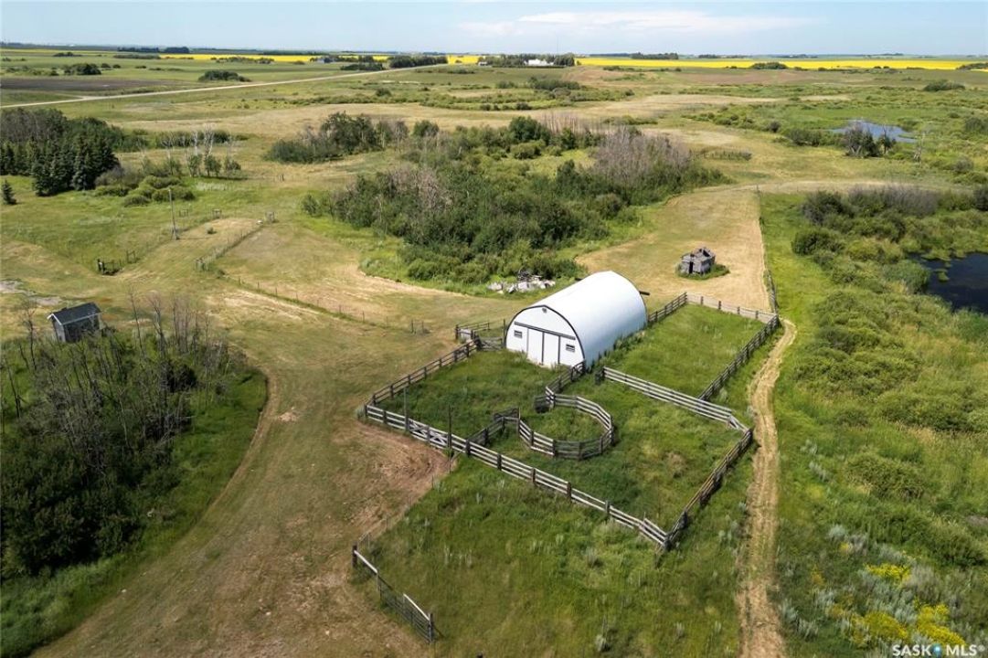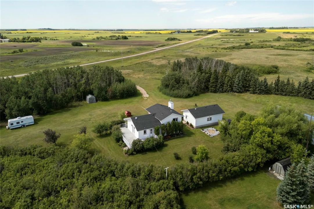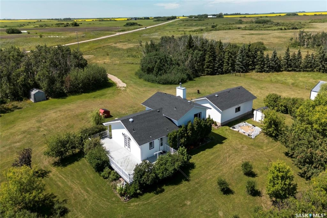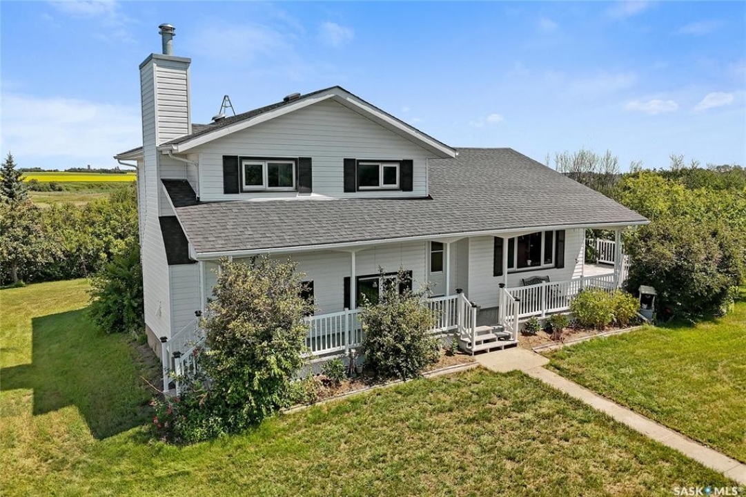 Seller says sell! Try an offer! Quick possession! Freedom from commotion and the bustle of the city with nothing but open skies and peaceful living. Located approximately 40 klms from Regina sits 80 acres (40 cultivated acres) of green gently rolling hills and tranquil surroundings. Winding around the row of trees the house comes into view and you will immediately feel like you're in a different world. Pride of ownership shines through in every corner of the house and land. Imagine Saskatchewan sunsets or getting lost in a book from your wraparound deck. Behind the house are fruit trees and even some almond trees with a fire pit off to the side. The yard site has a 36' x 24' garage, 29' x 49' shop (10' doors) and a little further in behind is a 25' x 48' barn with 2 stalls. Fenced corals and pastures are ready for new animals. 40 acres of cultivated land. 2 sloughs. The house is so loved and very well maintained. Built with 2x6 construction. Living room at the front of the house with the eat-in kitchen, dining room and main floor laundry at the back. Located at the back door is a powder room which is perfect for coming in from the garden and cleaning up without bringing the mess through the house. Upper level has 3 good sized bedrooms, 4-piece bathroom with the primary bedroom having a 3-piece en-suite. 3rd level has a huge family room with a wood burning fireplace, 4th bedroom and a 2-piece bathroom. Lower level is open for development which could be a children's play area or family games room. Meticulously maintained and cared for over the years. Easy access from the highway but surrounded by trees makes you feel like you're all alone. Well on property with water treatment system included. Lagoon. School bus to Vibank aprox 13klms. K-12. Directions: Highway 48 about 20 minutes south of White City. Just East of Davin on opposite side of highway. Farm is across the road from large cross on hill.