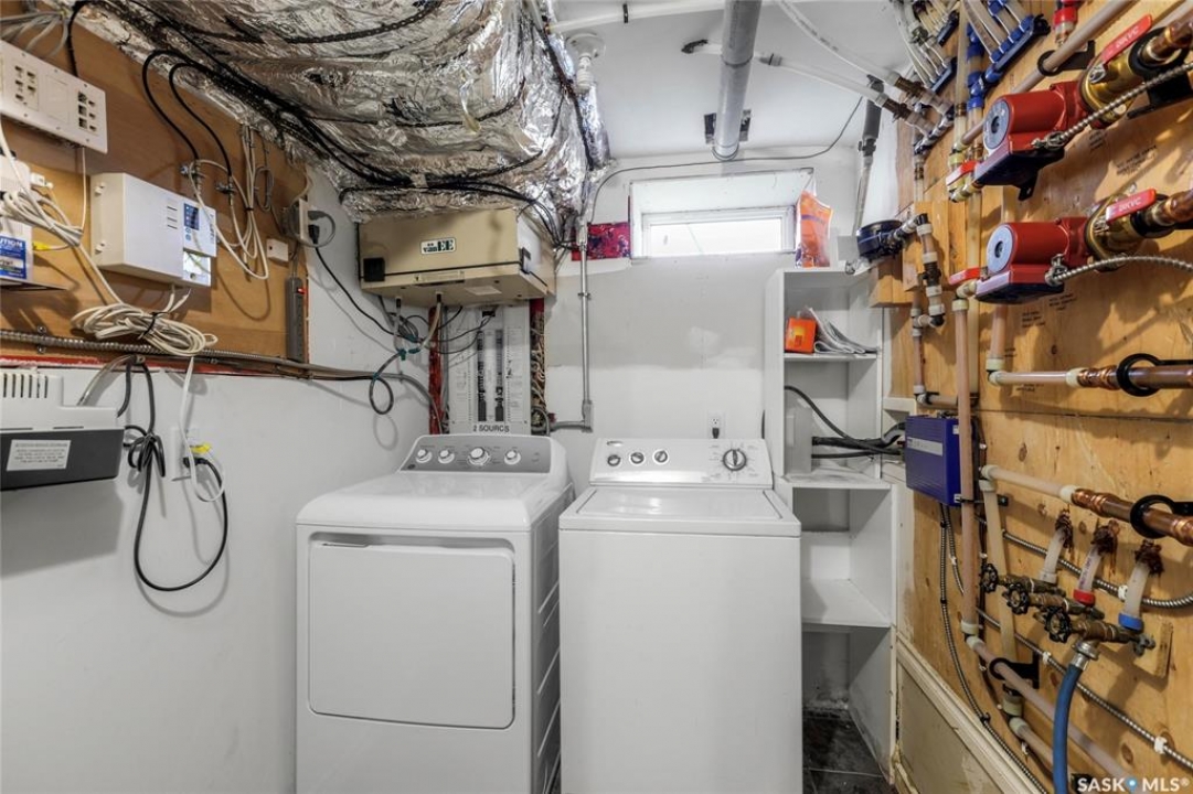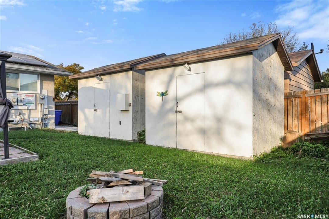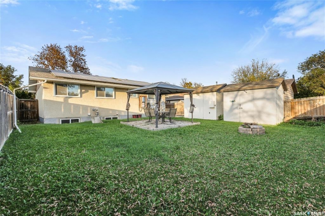 Step into fantastic investment opportunity in Regina's highly desirable Glencairn community with self contained regulation basement suite, in-floor heat in both units and solar panels to save on that electric bill. The well-appointed upper unit features an open concept living area with generous sized living room connected to the kitchen and dining area. Two good sized bedrooms, 1.5 bathrooms up and a spacious laundry/storage room complete the main floor. The self-contained basement suite boasts a separate entrance and large windows, featuring one bedroom with walk-in closet, one bathroom, laundry/mechanical room and a substantial open concept living space,. The back yard features a gazebo and two large electrified storage sheds. One of the standout features of this property is its low utility costs, attributed to the installed solar PV modules and a thoughtfully designed mechanical system. This not only enhances the appeal for potential tenants but also positions the property as a sustainable and economically attractive feature as a personal residence and/or rental property. Shingles updated in 2020 and new boiler system in 2022. Don't miss this rare opportunity to invest in a property that combines modern amenities with energy efficiency in a sought-after neighborhood.