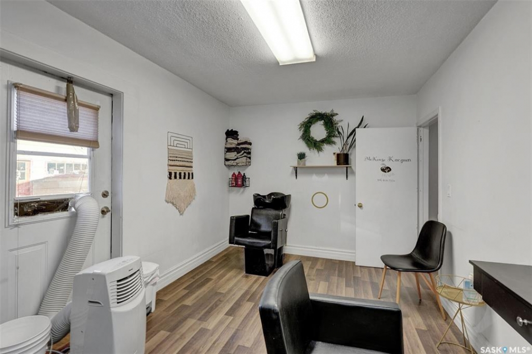 Excellent Commercial zoned building for sale in Montmartre, SK with great street frontage. Start or move your small business where there are 5 private rooms, 4 with interior entries off main entrance hall and 1 with exterior entry. Potential for $2000.00 to $2500.00 total monthly revenue. Currently there are 2 existing leases in place until the end of 2025, one as Hair Salon and one as Retail. Vendor operates a Remedial Massage Therapy business in 'Room 1' and requires a 3yr Lease-back from purchaser. Plumbing for sinks in 3 rooms, one common bathroom, laundry room/storage room with washer/dryer included also houses the furnace and water heater. Coffee bar in hallway. There is a 27' x 30' Detached Garage used for storage, note; one overhead door is not operational. Building on crawl space with access in laundry/mechanical room. Metal roof on both house and garage. Call for further details or to arrange viewing.
