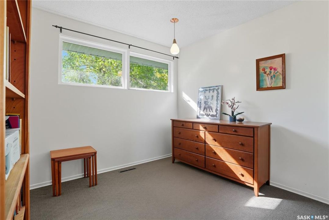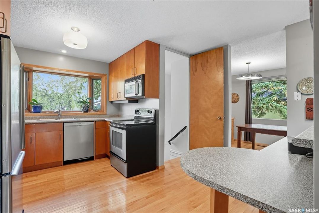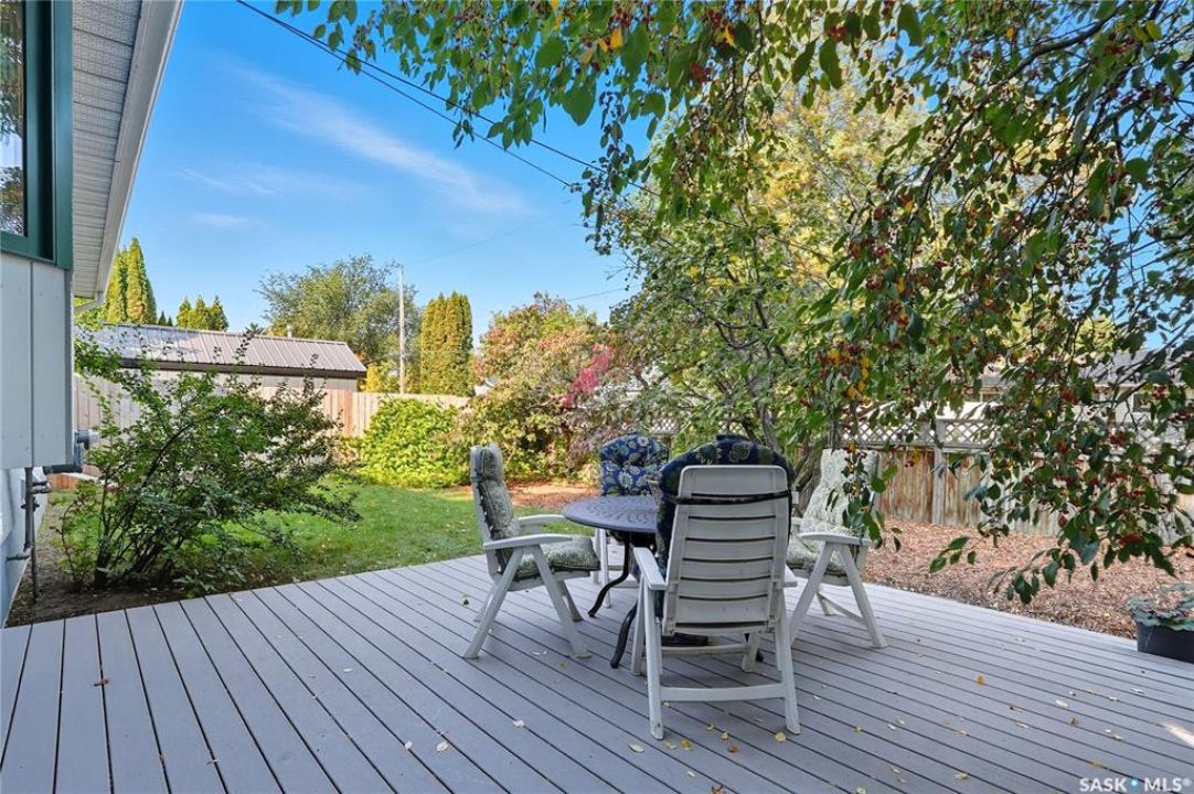 Situated within Ling Street's beautiful streetscape, and just around the bend from Albert Milne Park and gardens, 5 Ling Street offers a wonderfully-kept, fully developed 4bed/3bath home, with nearly 2,400sf of living space. The location, within the much admired Greystone Heights neighbourhood, is also within a 5min walk of Greystone Elementary School (home to Saskatoon's SAGE program) and Park, 14th Street's cycling and walking 'greenway', 8th Street shopping and dining amenities, and is a short morning cycle or drive to work at RUH or the University of Saskatchewan. Inside, this family home offers 1,190sf in a semi-open plan, highlighted by its generous living room, an ensuite bath, and contemporary open sight lines between the kitchen and living areas – great for conversational dinner prep and evening entertaining of friends. The classic main floor features a contemporary European kitchen, stunning bayed window views of the front and rear yards from the living room & kitchen, upgraded hardwood flooring, renovated baths, 8' interior doors and closets, and a selection of lighting upgrades. The lower level has been remodelled with a fresh, bright and modern interior aesthetic in mind, with updated carpet & Terrazzo tile flooring, upgraded insulation & ceilings, sconce lighting, bright white trim package, and a wonderful 3-pc bathroom. The basement includes a generous family room area, studio or den space, guest bedroom, remodelled laundry facilities, and ample storage. Several other notable features include, updated shingles, a full appliance package (including a Boesch dishwasher), composite deck, updated plumbing (incl. a hi-eff. hot water heater in 2024), electrical, and a refreshed home exterior with fabulous spaces for outdoor entertaining and a gorgeous variety of shade, fruit, and ornamental trees. You are invited to contact your local REALTOR � to schedule your own personal tour of this fine home today!