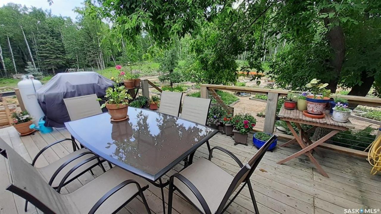Expansive ranch-style home boasting over 4,500 sq. ft. on the main level, featuring 5 bedrooms—each with its own ensuite bathroom—plus 2 additional bathrooms. This charming home includes a luxurious chef's kitchen and an 800 sq. ft. suite of equal elegance. The original home was built in 1989, with seamless additions of 2,000 sq. ft. in 2010 and another 1,100 sq. ft. in 2022. Nestled amidst serene forest surroundings, this retreat sits just 1.8 km from pavement on 154 acres, close to lakes, numerous recreational attractions, and the vibrant resort town of Big River. A stone fireplace warms up to 2,000 sq. ft., complemented by wood and propane furnaces, with Generac power backup in place. Whether for a large family, a business opportunity—which the current owners have established as an income producing Bed and Breakfast—or a personal sanctuary, this home fulfills every need. The open basement awaits minimal finishing. The 800 sq. ft. suite offers an aging-in-place design with double vanity sinks, an age-friendly shower and toilet, laundry facilities, a kitchenette, and a scenic backyard view. Covered decks at the front and back enhance entertaining possibilities, while a water filtration system ensures pristine drinking water. The chef's dream kitchen boasts double ovens, ample fridge and freezer space, expansive countertops, and abundant storage, complemented by outdoor perennials, fruit trees, perennial berries and vegetable garden. Details regarding the sturdy construction and excellent insulation—as well as outbuildings (24'X32', 20'X20', 8'X8', 12'X26') —are available upon request for serious, pre-qualified buyers. Viewings require reasonable advance notice and promise to impress!