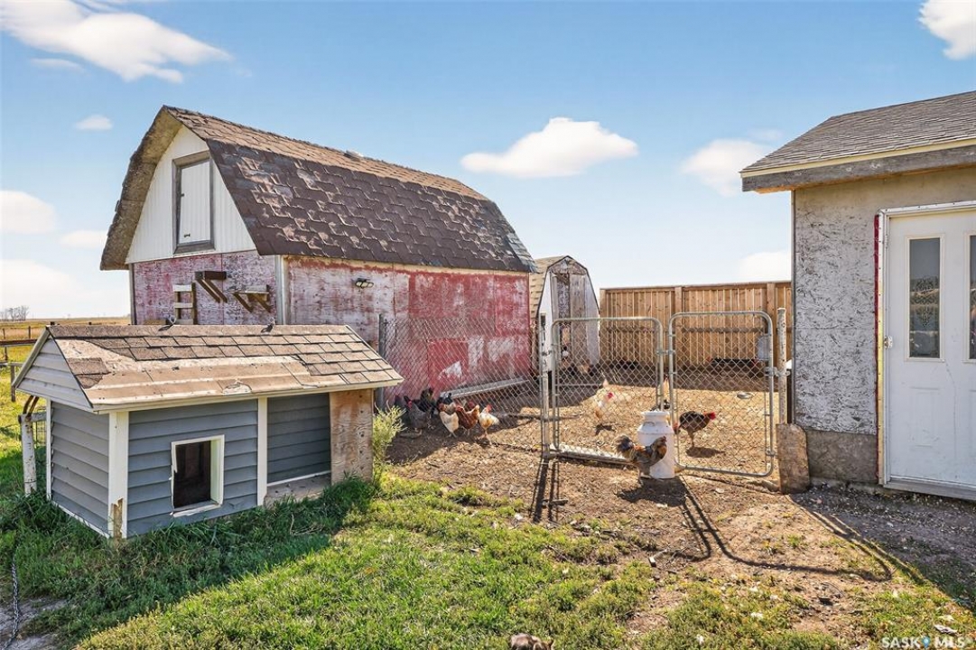 Acreage living at its finest! This spacious, move-in ready, 3 bed, 3 bath house is on town water and sewer, and only a stones throw away from pavement! Only 10 minutes from Moose Jaw, this 1.64 acres is perfect for anyone wanting to go from the chicken coop to date night in less time than it takes to fill up a slip tank! Starting in the yard, you will find the chicken coop sitting right next to a classic Dutch door horse barn with both power and water, saving you the daily water bucket trips! The water and power also run to the fully insulated and heated oversized single garage. Walking from the garage to the house the first thing you will see is the massive mudroom, ready to handle the mess from the day. Entering into the spacious living room, you'll flow right into the kitchen and into the formal dining room. Come cozy up next to the wood fireplace in primary bedroom which also features a large 3 piece en-suite and walk in closet! Another 2 bedrooms, one containing a 2-piece on suite make up the upper level! And don't worry, there is plenty of space for storage in the basement. With extensive updates including a new furnace, stove, washer & dryer in 2024 and a new water heater with paint facelift in 2025, this place will not disappoint! Book your showing today!