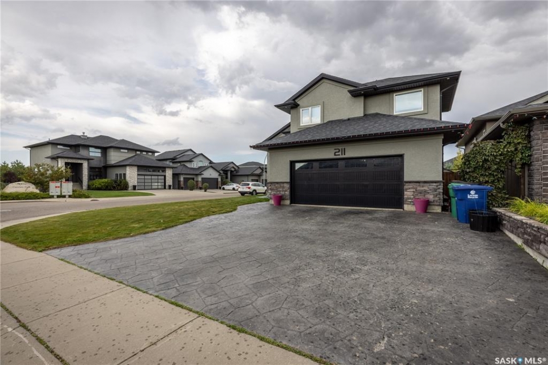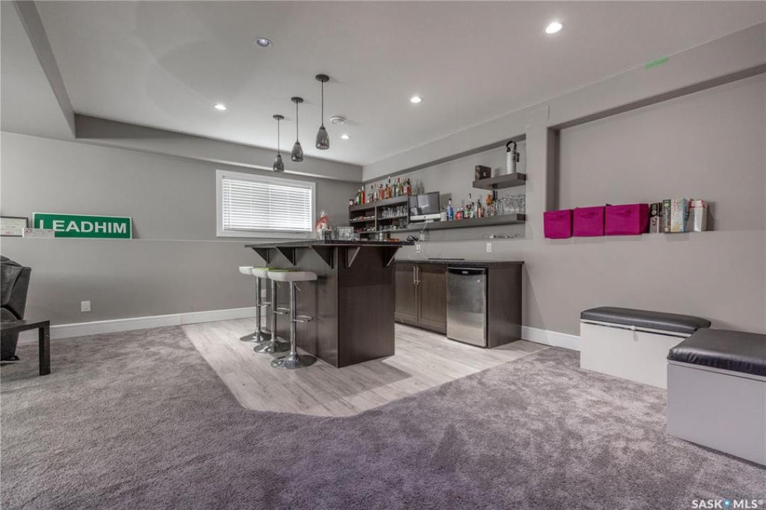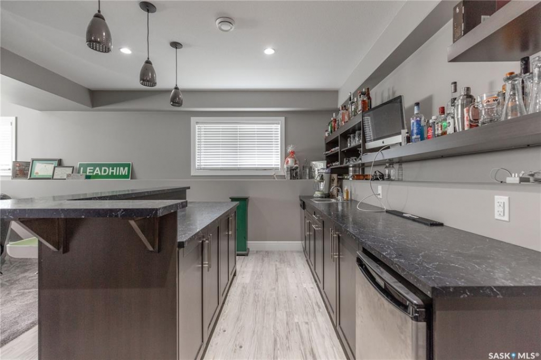 Welcome to 211 Sauer Crescent in beautiful evergreen! This 1,459 sqft modified bi-level is the kind of home that balances family function with a little bit of flair. Set on a large corner lot, you'll enjoy extra outdoor space for kids, pets, or your dream garden. The fully fenced yard, deck, and heated double attached garage make everyday life just a little easier (and warmer in the winter). Inside, the open-concept main floor invites connection. The spacious kitchen boasts quartz countertops, plenty of storage, and a layout that flows right into the living and dining areas. A gas fireplace adds the perfect touch of cozy for movie nights or lazy Sundays. With 4 bedrooms and 3 bathrooms, there's room for everyone to spread out. The primary suite features a 5-piece ensuite and a walk-in closet—big enough to keep you organized, even if you're not a minimalist. Head downstairs and you'll find the ultimate hangout zone: a full wet bar complete with floating shelves, built-in fridge, dishwasher, and built-in speakers. Whether you're hosting friends, family, or just yourself and the game, this lower level is designed for good times. Evergreen is one of Saskatoon's most family-friendly neighbourhoods, with schools, parks, trails, and all the amenities you need just a short drive away. If you've been hunting for a home that's practical, stylish, and ready for your next chapter, this one might just be the perfect fit. Come take a look—you'll see why Evergreen feels like home!