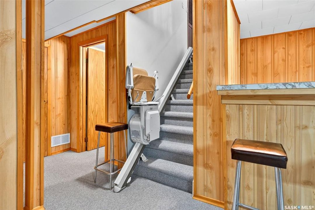 Welcome to 62 Lyons Street! This 1,096 sq. ft. bungalow, built in 1969, sits in the heart of Mount Royal and fronts onto green space and St. Francis School. The home has been lovingly maintained by the same family for 50 years and is in immaculate condition. The bright front living room features a large window, and the kitchen and dining room flow seamlessly together. While the kitchen is original, it is in excellent condition, featuring a stove next to the fridge, microwave, and dishwasher, and connects to a cozy sunroom. The main floor offers three bedrooms and a spacious bathroom with a Jacuzzi tub. The basement is set up for family living, complete with a large family room, wet bar, 3-piece bath, oversized bedroom (window may not meet egress), and a second fridge. A generous laundry/utility room provides plenty of storage. The pool table will also stay. The backyard is private and beautifully landscaped with alley access, underground sprinklers (front yard), and a massive 25x24 detached garage with a new spring on the overhead door. Recent updates include new shingles (2024), freshly painted exterior (2024), and a new front window. Mechanical features include a mid-efficiency furnace (regularly serviced), 100-amp electrical panel, and owned hot water heater and softener. This is a rare opportunity to own a long-time family home in a prime location, cared for with pride and ready for its next chapter. Chair lift to be removed prior to possession.