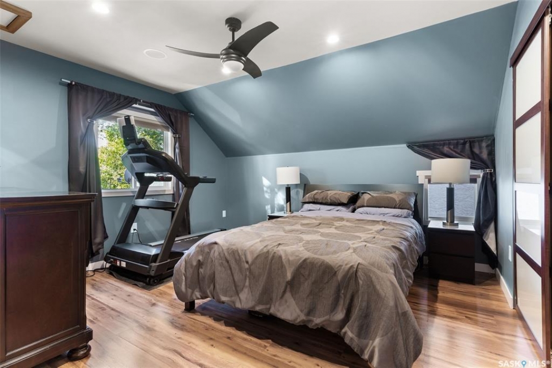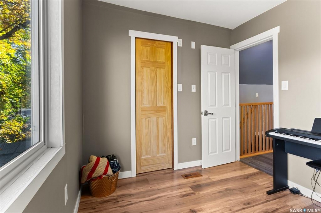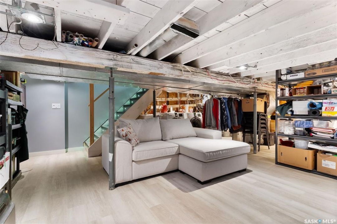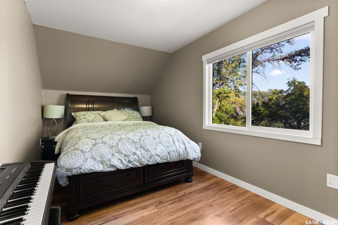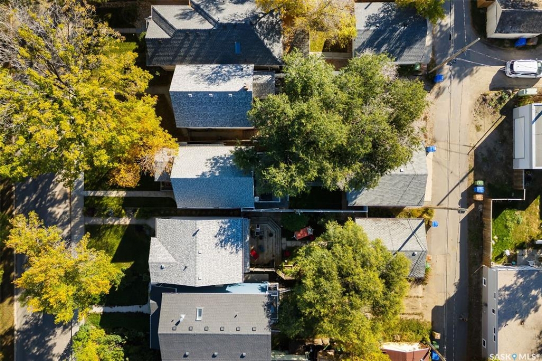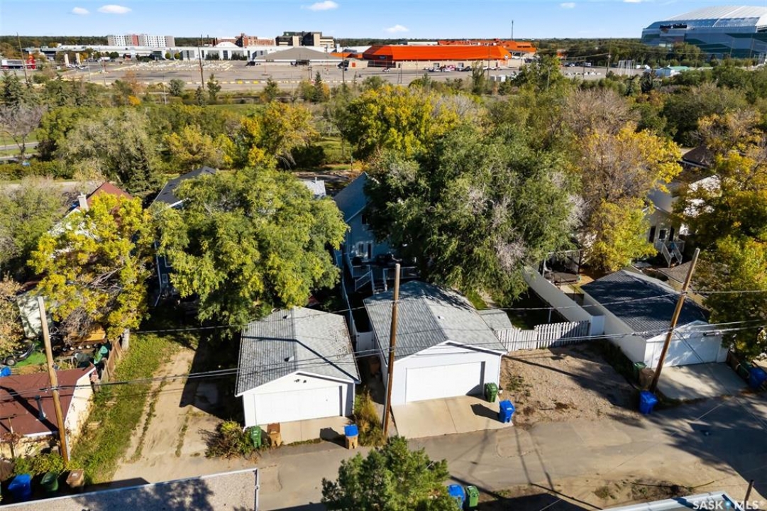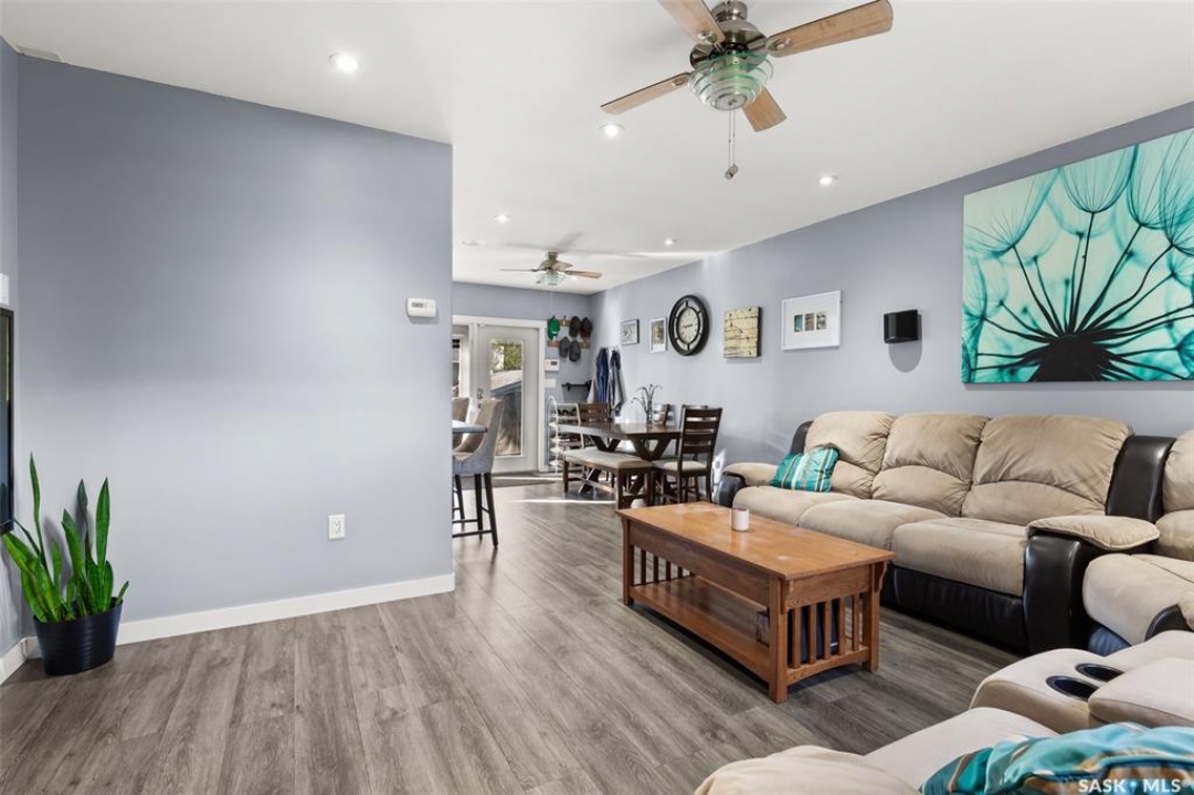 Nestled in the heart of the Historic Cathedral neighbourhood and perfectly positioned across from a lush green space, this charming and thoughtfully updated home blends character with modern convenience. Step into the bright, recently remodeled sunroom that faces the park—wired for electricity and built on screw piles—offering a cozy retreat with a view. The peninsula kitchen is a standout, featuring newer cupboards, crisp white cabinetry, a stylish herringbone tile backsplash, stainless steel appliances including a fridge with ice and water, and elegant pendant lighting. Throughout the home, you'll find all new fixtures, pot lights, fresh trims, and newer PVC windows that flood the space with natural light. Built-in speakers enhance the kitchen, dining area, and both upstairs bedrooms. The upper level hosts a spacious principal bedroom with a walk-in closet, a second bedroom, and a beautifully updated four-piece bath complete with a deep soaker tub and tile surround. Downstairs, the newly poured concrete slab is complemented by reinforced walls, and spray foam insulation throughout. The basement also features a new 100 amp panel with ample capacity, a laundry area, a cozy space ideal for a TV room, and a convenient two-piece bathroom. Outside, enjoy the expansive 14 x 20 composite deck with aluminum railing, a unique garden shed on the east side, and underground sprinklers in the backyard. The 22 x 26 heated and insulated garage, built in 2008 and finished with OSB, adds even more value, along with newer shingles on the house for peace of mind. This fine property is close to parks, bus routes, Mosaic Stadium and all Downtown amenities. Call your Relator for more information or personal tour.