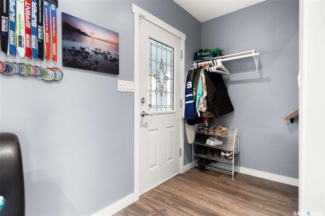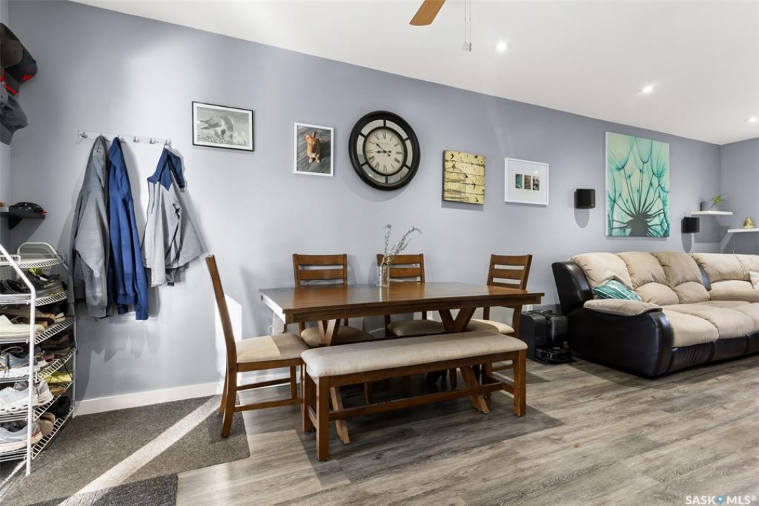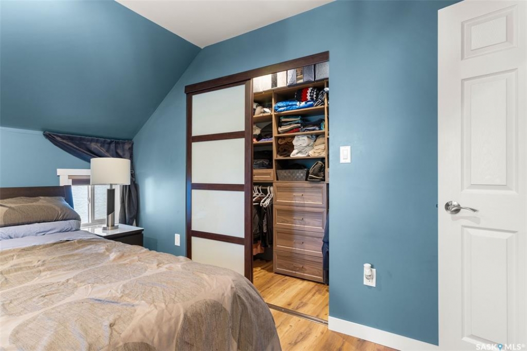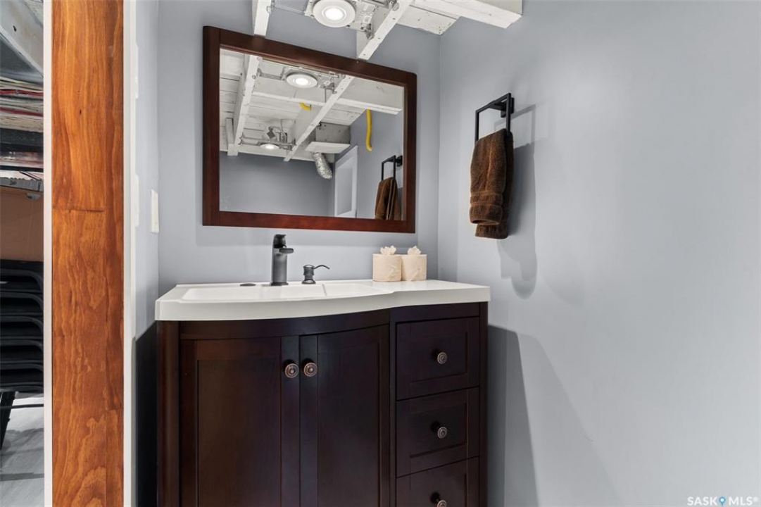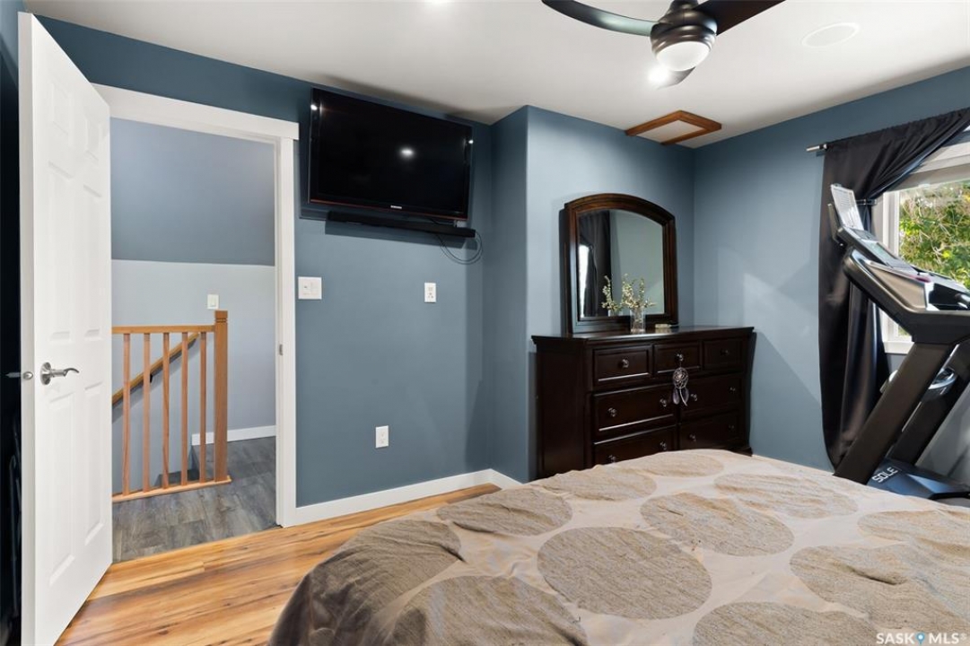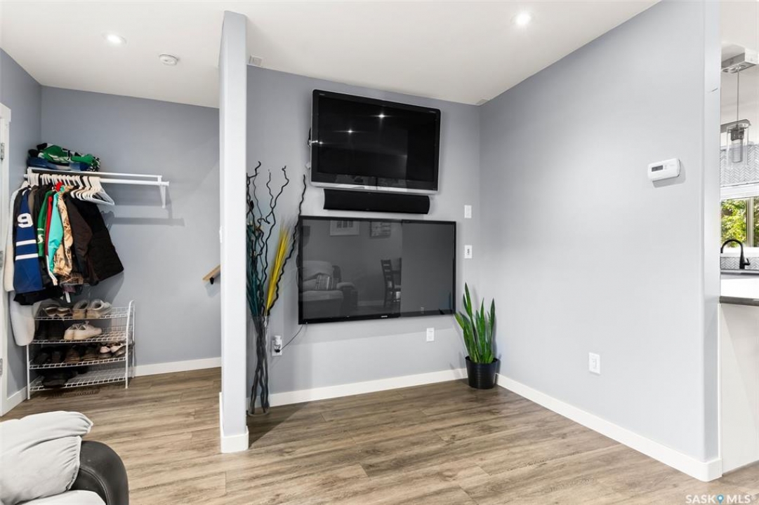 Nestled in the heart of the Historic Cathedral neighbourhood and perfectly positioned across from a lush green space, this charming and thoughtfully updated home blends character with modern convenience. Step into the bright, recently remodeled sunroom that faces the park—wired for electricity and built on screw piles—offering a cozy retreat with a view. The peninsula kitchen is a standout, featuring newer cupboards, crisp white cabinetry, a stylish herringbone tile backsplash, stainless steel appliances including a fridge with ice and water, and elegant pendant lighting. Throughout the home, you'll find all new fixtures, pot lights, fresh trims, and newer PVC windows that flood the space with natural light. Built-in speakers enhance the kitchen, dining area, and both upstairs bedrooms. The upper level hosts a spacious principal bedroom with a walk-in closet, a second bedroom, and a beautifully updated four-piece bath complete with a deep soaker tub and tile surround. Downstairs, the newly poured concrete slab is complemented by reinforced walls, and spray foam insulation throughout. The basement also features a new 100 amp panel with ample capacity, a laundry area, a cozy space ideal for a TV room, and a convenient two-piece bathroom. Outside, enjoy the expansive 14 x 20 composite deck with aluminum railing, a unique garden shed on the east side, and underground sprinklers in the backyard. The 22 x 26 heated and insulated garage, built in 2008 and finished with OSB, adds even more value, along with newer shingles on the house for peace of mind. This fine property is close to parks, bus routes, Mosaic Stadium and all Downtown amenities. Call your Relator for more information or personal tour.