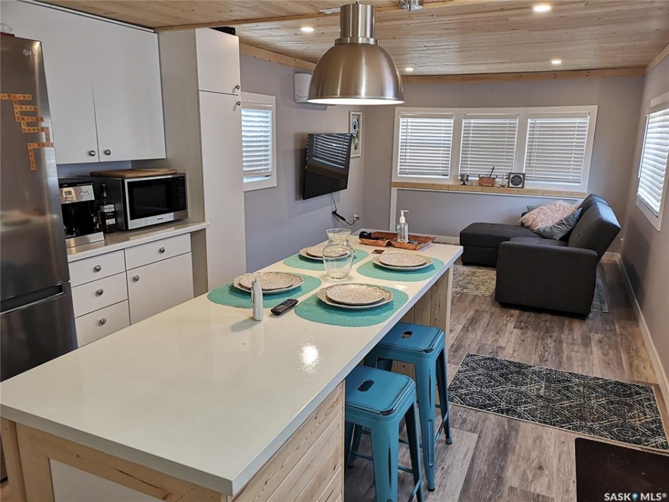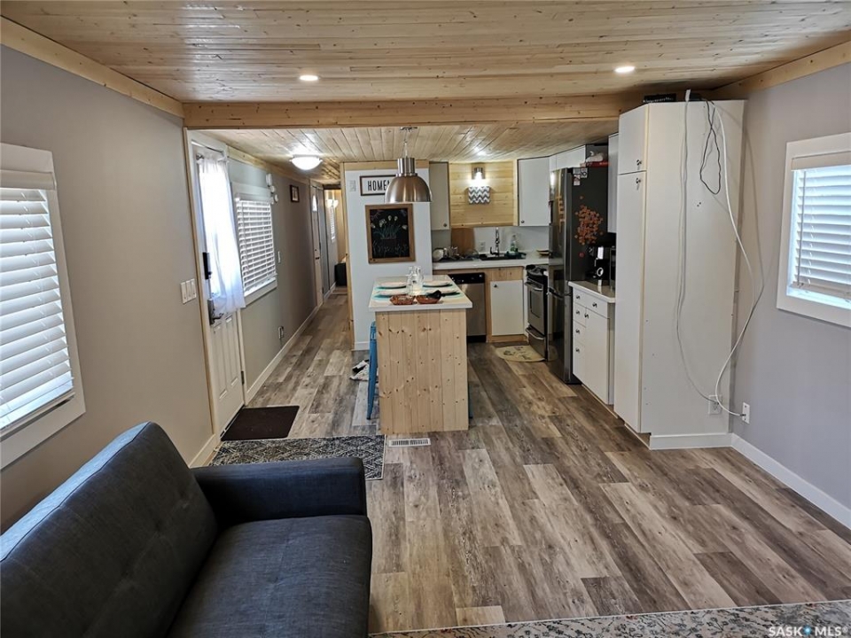 709 2nd Ave West, Kindersley. The perfect investment property is waiting for you! This cozy, fully renovated mobile home is situated on an owned lot and offers a large fully fenced yard with a heated 22x24 detached garage built in 1999. The home is a 2 bedroom, 1 bath and approximately 696 square feet. Major updates include the kitchen, drywall, furnace, water heater, windows and bathroom. The walls and ceiling have been insulated. Other features/updates include flooring, electrical, central air and all fixtures. Current tenants in place until January 2026. Take over this amazing rental and make some great income! Call today for more details and to schedule your tour.