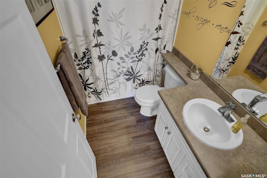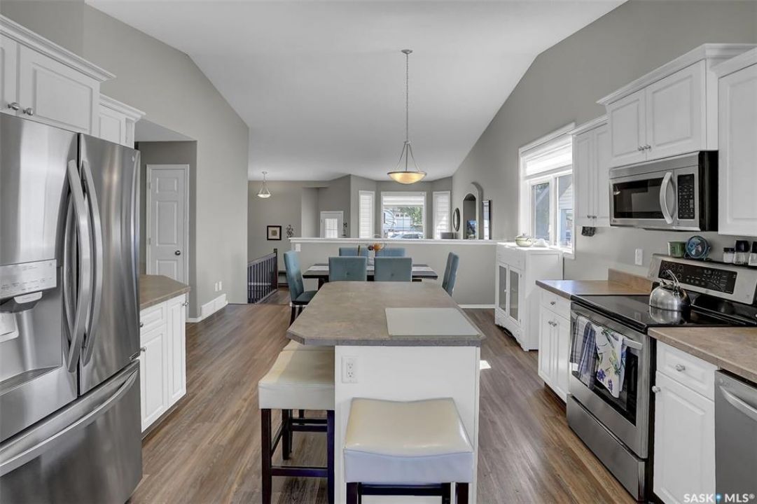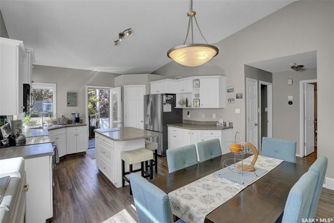 Welcome to this beautiful family home in the desirable neighborhood of Lakeridge. This well-maintained bungalow with 4 bedrooms and 3 bathrooms with a spacious 1238 sq ft open floor plan with vaulted ceilings creating an airy and inviting space. The fully finished basement with gas fireplace is great for family and movie nights. Recent updates include some basement rooms painted, vinyl fencing on 3 sides and 4th side stained in 2024, as well as new shingles in 2023, main floor painted and rust free hideaway privacy screen on deck in 2022, main floor luxury vinyl plank flooring to living, dining, kitchen and bathroom, new deck railing and custom drapes in main rooms up and down in 2021, all new stainless steel appliances in 2019, composite 2 tiered deck in 2017. There are also 2 kick plates part of the central vac system located in the dining/kitchen area and front landing, these flip open and suck up the debris from sweeping, so easy and convenient. The beautiful backyard so private and inviting with a hot tub to provide a wonderful relaxing oasis. Underground sprinklers front and back, oversized double garage. Located close to Winston Knoll Collegiate and Riffel Highschool and nearby elementary schools, walking and bike paths, restaurants, grocery stores and so many more amenities. Don't miss out on this opportunity to own this beautiful move in ready home.