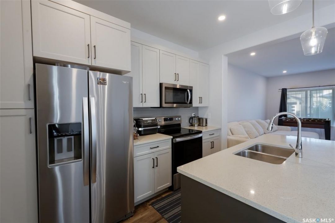 This stylish 2-storey home in the desirable Brighton neighborhood offers 1362 sq. ft. of designed living space. The kitchen features a sit-up island, custom cabinetry, quartz countertops, built-in dishwasher, and an exterior-vented over-the-range microwave. An open dining area flows seamlessly into the living room, complete with a striking stone feature wall and an electric fireplace, perfect for cozy evenings. Upstairs you'll find three bedrooms, including a primary suite with a walk-in closet and private 3-piece ensuite. Convenient second-floor laundry makes daily living easier. The lower level offers the option for a legal suite, providing excellent investment or mortgage helper potential. Outside, enjoy a landscaped front yard and a 22' x 22' parking pad. Located in beautiful Brighton, you'll be just minutes away from parks, schools, shopping, and many other amenities.