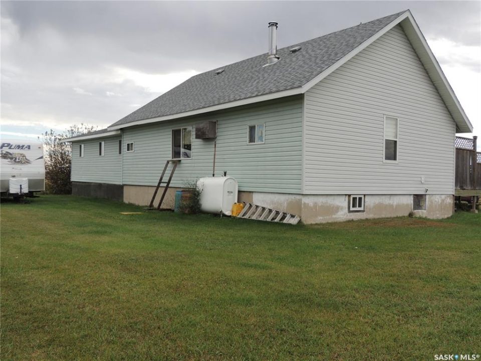 This acreage is on 80.45 acres. It is set up for someone with horses or cattle. There is a portion fenced with corrals and wind break building with watering bowl. A portion of the land is good for hay. The yard has plenty of grass and trees. There is a detached garage with power and concrete floor. The storage shed provides extra room to keep lawn care items in. The front of the home has a large deck. The main entrance has access to the living room with dining room off of it. There is a full bathroom also off the entrance. The side entrance has the laundry room and access to the basement. The main floor has three large bedrooms, and a den. The basement is partially finished with the utility room, 3 piece bathroom, and rumpus rooms.