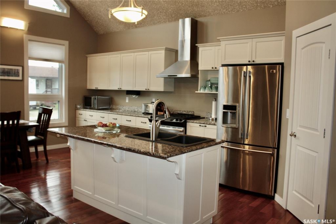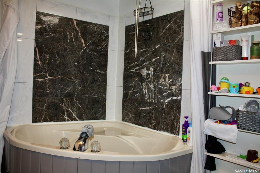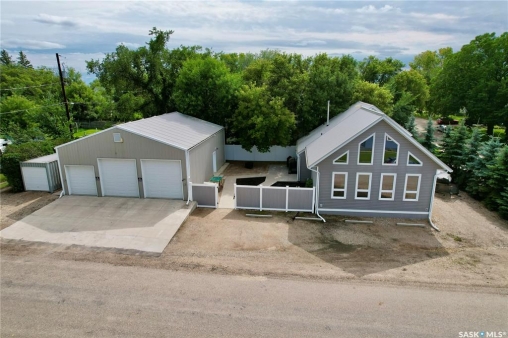 Welcome to a 1 and a half storey home with Dream Shop(34'x40') Corner Lot at 212 Jura St in Colonsay, SK Located just 30 minutes east of Saskatoon in the quiet community of Colonsay, with huge addition offers 1,588 sq. ft. of thoughtfully designed living space The massive dream garage/shop is a must see and is perfect for hobbyists, mechanics, or small business owners. The heart of the home is the open-concept kitchen, complete with granite countertops, a granite sink in the island, stainless steel appliances including a gas range, a massive pantry, hardwood floors, and a built-in bar area—ideal for entertaining. The living space features vaulted ceilings, large windows that flood the home with natural light, and a cozy natural gas fireplace. The primary bedroom is spacious with two closets, while the main bathroom feels luxurious with double sinks, a granite vanity, tiled backsplash, shower, and heated tile floors. Upstairs, you'll find a generous second bedroom with a walk-in closet, plus a large office/loft area, both beautifully finished in pinewood. The finished basement includes a third large bedroom and a full 4-piece bathroom with a corner tub and shower. Outside, the low-maintenance, fenced courtyard is Xeriscaped with vinyl fencing, two sheds (one insulated with power), concrete patio and ample space to relax or entertain. A true showstopper is the 34' x 40' heated garage/shop. Features include: 12' ceilings, interior lined with steel, radiant heat, floor drain, 3 bays - each plumbed with air and power, wall plugs every 3 feet, wall cabinets, home office, a separate storage room with in-floor heat and extra enclosed storage above. Off-street parking for at least 12 vehicles. This property is the perfect blend of comfort, style, and functionality. This is a great family home and a truly great shop—this one has it all. Don't miss your chance to own this unique property! Call to book your showing.