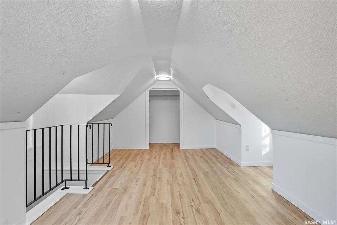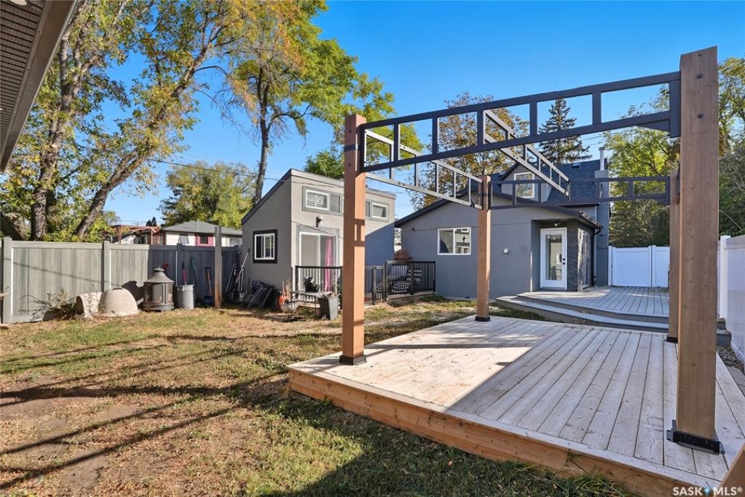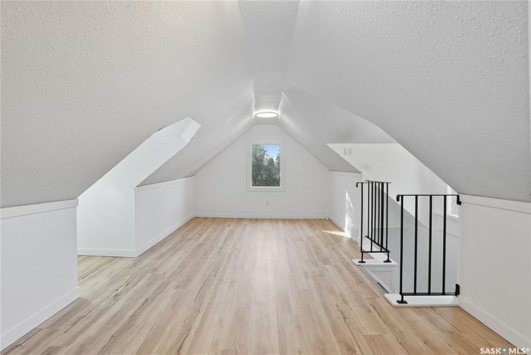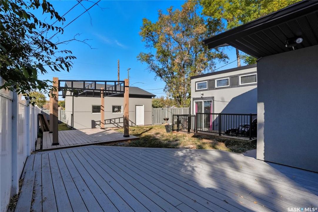 Welcome to 1041 Ave L N in Hudson Bay Park! This well-cared-for home offers just over 800 sq. ft. of living space on a corner lot that backs onto a park and dog park, with barely any neighbours. Inside, you'll find a cozy layout with a loft-style bedroom upstairs and a beautifully updated main level. The property also features a she shed currently used as a salon with a small deck and heat! Enjoy the heated double heated car garage and an impressive list of updates that make it truly move-in ready. Recent improvements include: 2” foam acrylic stucco (2018), new air conditioner (2019), new roof shingles (2021), a brand new garage (2022), a full kitchen renovation with Superior Cabinets (2022), all new electrical, insulation, drywall, plumbing and flooring on the kitchen level (2022), a new bathroom with Superior Cabinets (2022), vinyl fencing (2022), a new driveway (2023), Brandy's She Shed (2023), and a composite back deck (2024). The home also had all new doors and windows installed in 2017 (except the bay window at the front). Located close to parks, schools, and amenities, this home perfectly combines modern upgrades, character, and an excellent location.