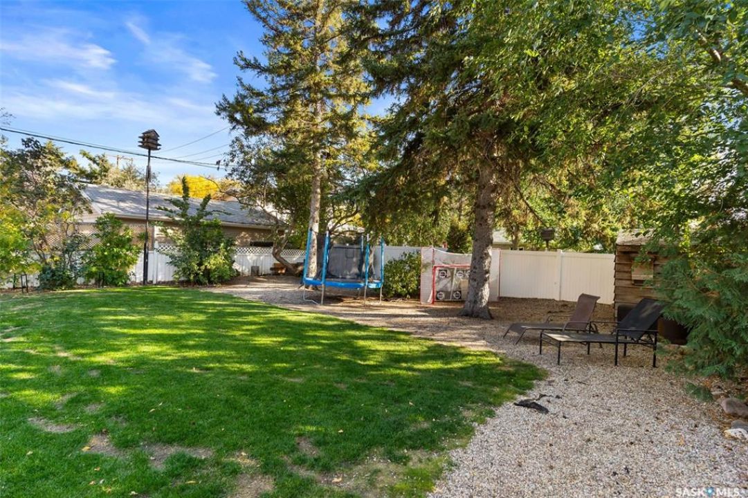 Welcome to 1809 Dufferin Road, located in Regina's sought-after Whitmore Park. This well-kept 1,050 sq. ft. bungalow is move-in ready and offers both style and function, making it an ideal choice for families, first-time buyers, or downsizers alike. Inside, you'll find a bright and spacious living room with a large picture window that fills the space with natural light. The main floor features hardwood floors, a dedicated dining area, and an updated kitchen with white cabinetry, stainless steel appliances, and plenty of counter space. Three good-sized bedrooms and a refreshed 4-piece bathroom with a granite countertop complete the main level. The fully developed basement offers even more living space with a huge recreation room—perfect for entertaining, a play area, or a home theatre. An additional bedroom and laundry/utility area make this level functional and versatile for today's family needs. Step outside to a large 6,536 sq. ft. lot with a fully fenced backyard designed for relaxation and play. Enjoy mature trees, a patio for summer BBQs, a firepit area, garden space, and room for kids to run or set up play equipment. Other notable features include updated windows, central air conditioning, modern finishes throughout, and a concrete driveway with ample off-street parking. This property combines comfort, updates, and a fantastic location close to schools, parks, shopping, and south-end amenities. Don't miss your chance to call 1809 Dufferin Road home!