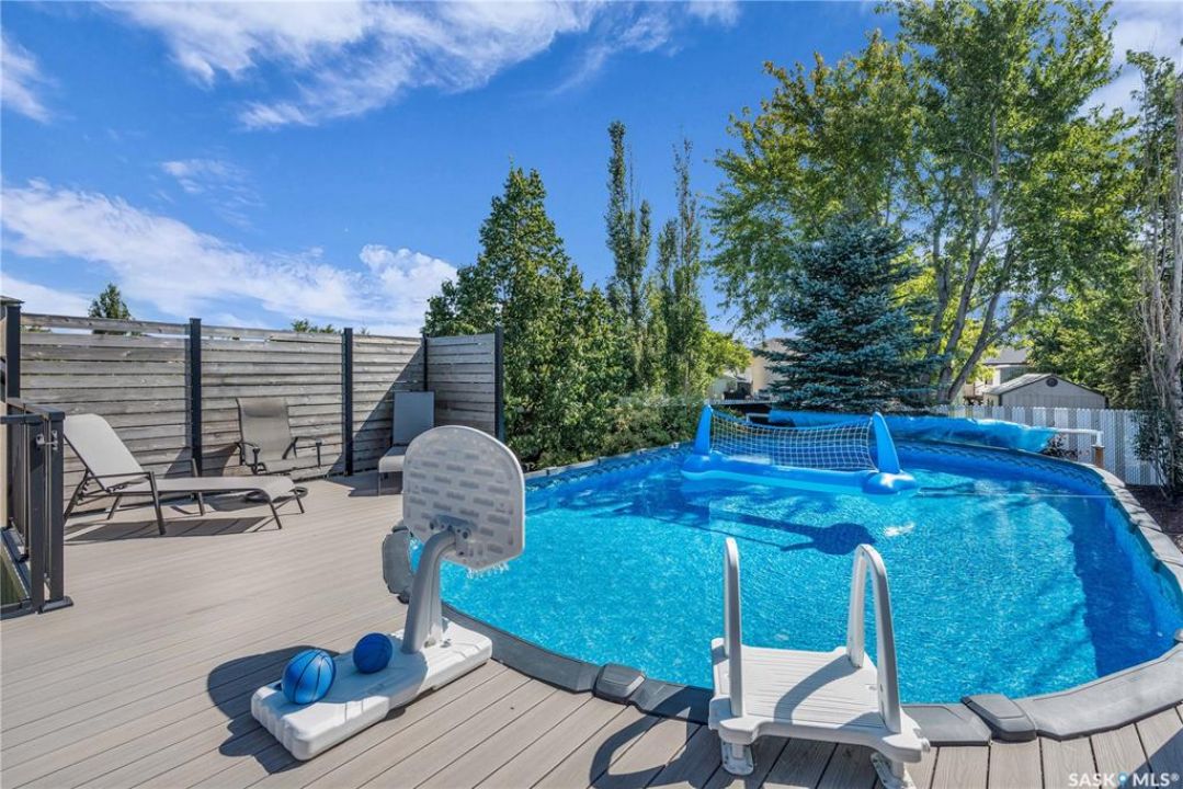 Discover the perfect blend of comfort, style, and convenience in this exceptional property, ideally situated in a highly sought-after cul-de-sac. Just a short stroll from the promenade in the new Parkridge extension and the vibrant Blairmore shopping center, you'll find all your essential amenities right at your fingertips. Enjoy charming walking paths, pocket parks, and close proximity to schools, making this neighborhood not only safe but peaceful and ideal for families. This custom-built, one-of-a-kind residence is nestled on a sprawling pie-shaped lot, featuring a stunning backyard oasis that's perfect for relaxation and entertainment. Dive into your very own sparkling, permanent above-ground heated pool, measuring an impressive 18x33, where you can bask in the sun on warm summer days. The backyard is beautifully landscaped with mature trees, lush shrubs, and vibrant perennials, creating a serene outdoor retreat. Step inside to find a thoughtfully designed interior that exudes warmth and charm. The open great room concept features 9ft ceilings, gas fireplace, and hardwood flooring. The chef's kitchen is a culinary delight, with custom features, island, walk in pantry, under-counter lighting illuminates the stunning marble tile backsplash that beautifully accentuates the granite countertops throughout the home, combining style with functionality. The main floor also features a den & 2pc bath. This home features 4 spacious bedrooms and 4 bathrooms, including a luxurious ensuite with a tiled shower equipped with four shower heads and his-and-her sinks. The master bedroom offers a walk-in closet. Comfort is paramount in this residence, with heated floors in the garage and basement, as well as tiled sections throughout the other levels. The basement serves as a perfect retreat, featuring spray-foamed exterior walls and a delightful wet bar. Embrace the outdoor enjoyment and tranquility of living in a family-friendly neighborhood. Your dream home awaits