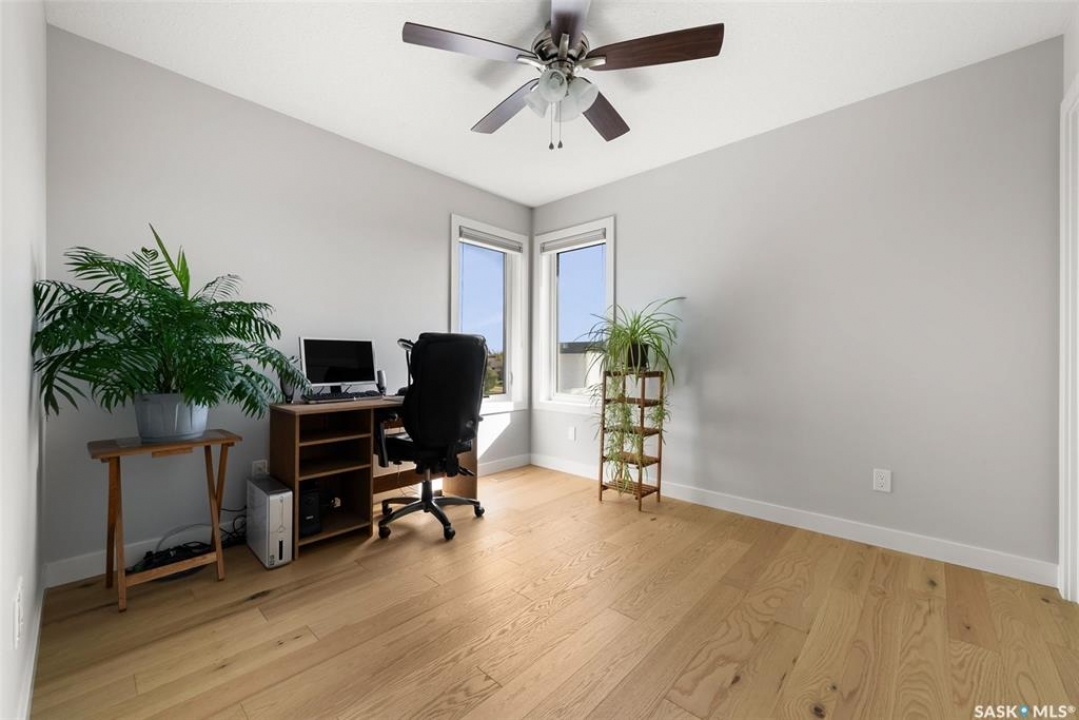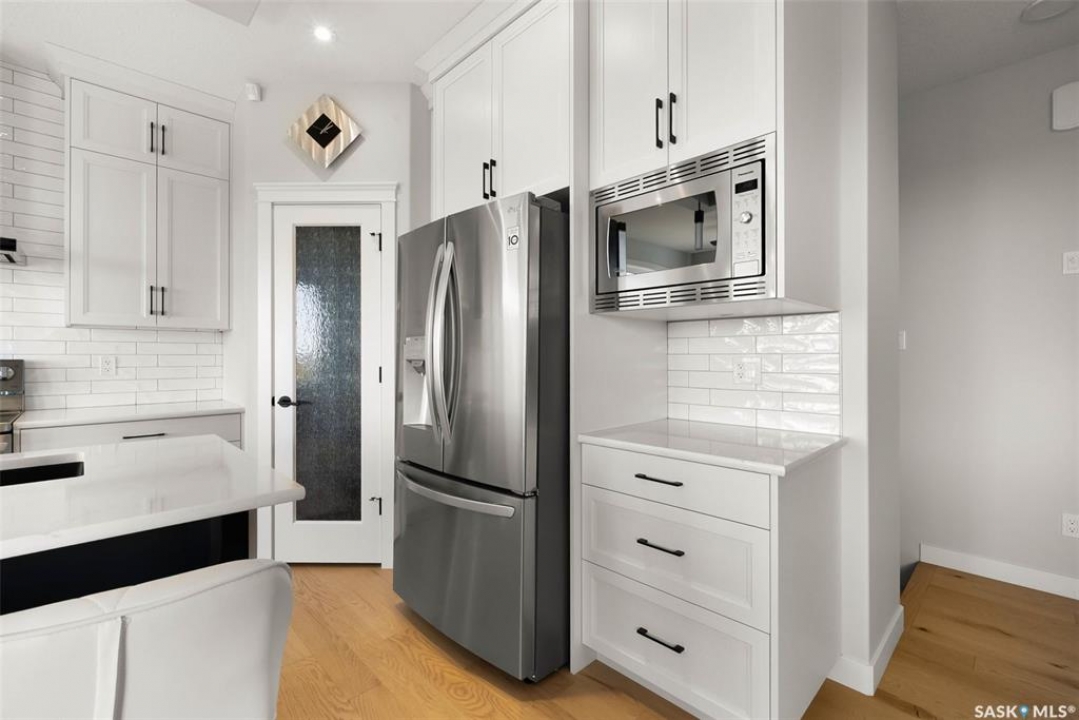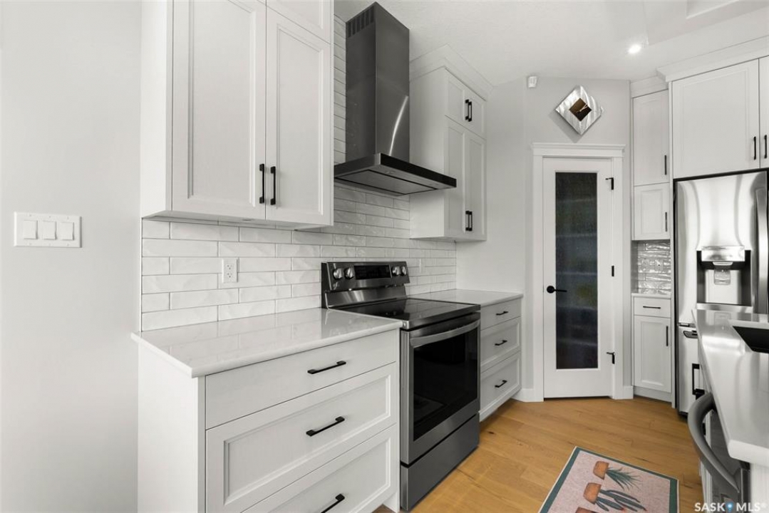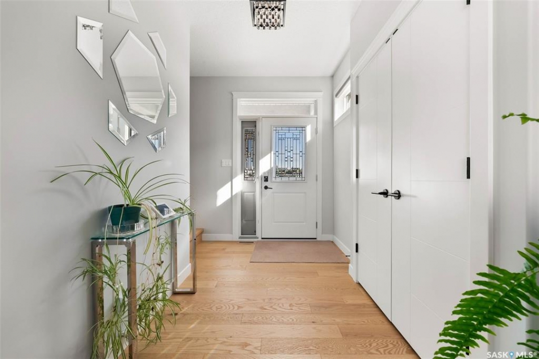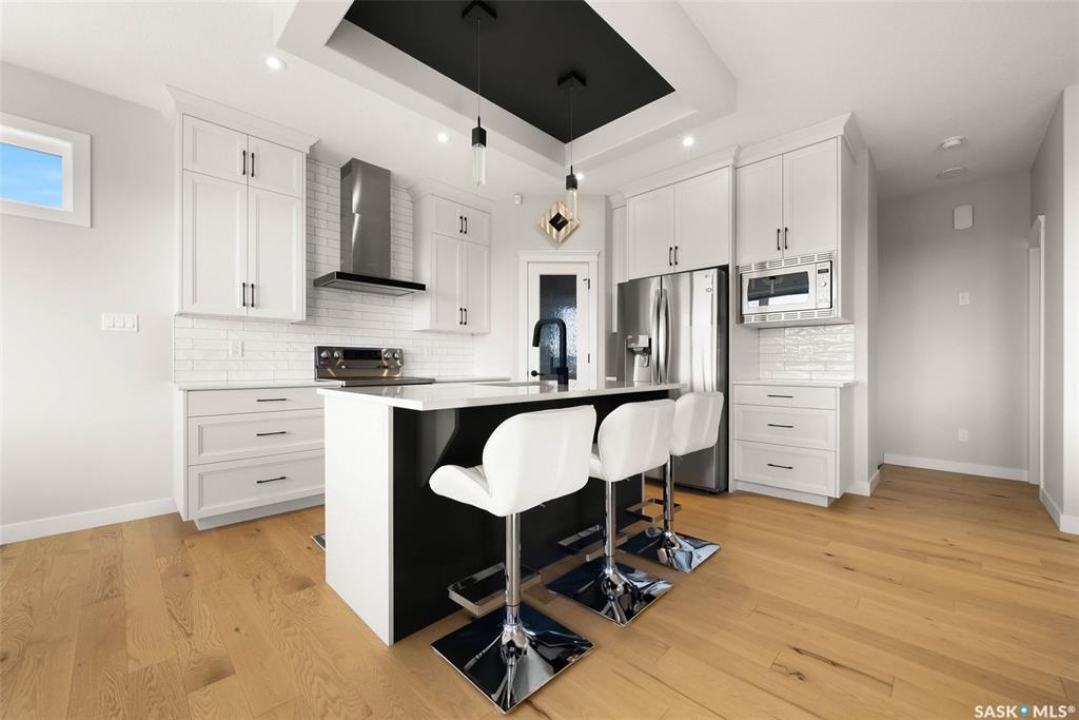 Welcome to 408 Hillside Drive in Pilot Butte! Built in 2020, this impressive 2-storey home offers over 1,700 sq. ft. of thoughtfully designed living space plus a triple attached garage. With modern finishes, premium upgrades, and a prairie backdrop, it's the perfect blend of style, comfort, and functionality. The main floor showcases an open-concept layout with engineered hardwood flooring and 2x6 construction on 16” centers. A bright living room centers around a remote-controlled gas fireplace with stone surround, while oversized windows fitted with Hunter Douglas top-down/bottom-up blinds capture expansive views. The chef's kitchen boasts quartz countertops, custom cabinetry with under-cabinet lighting, subway tile backsplash, stainless steel appliances including a granite sink, a large island, and walk-in pantry. The dining area opens onto a spacious deck, ideal for entertaining, while a powder room and mudroom with laundry complete this level. Upstairs, the primary suite impresses with 10' ceilings, a walk-in closet, and spa-inspired ensuite with dual sinks and custom tiled shower. Two additional bedrooms, a full bath, and a bonus room with balcony access offer versatility for family living. The basement is open for development, with exterior walls spray-foamed and drywalled—ready for your personal touch. Notable upgrades include a whole-home water filtration system, surge protection, central A/C, on-demand hot water, and hot/cold water taps in the garage. Curb appeal shines with a fully insulated triple garage, exposed aggregate driveway, and beautifully landscaped yard. The backyard retreat features underground sprinklers, raised garden beds, lush lawn, a composite deck, and tiled patio backing green space—perfect for enjoying Saskatchewan sunsets. This home combines quality construction, thoughtful upgrades, and an unbeatable Pilot Butte location. Truly move-in ready for its next proud owner.