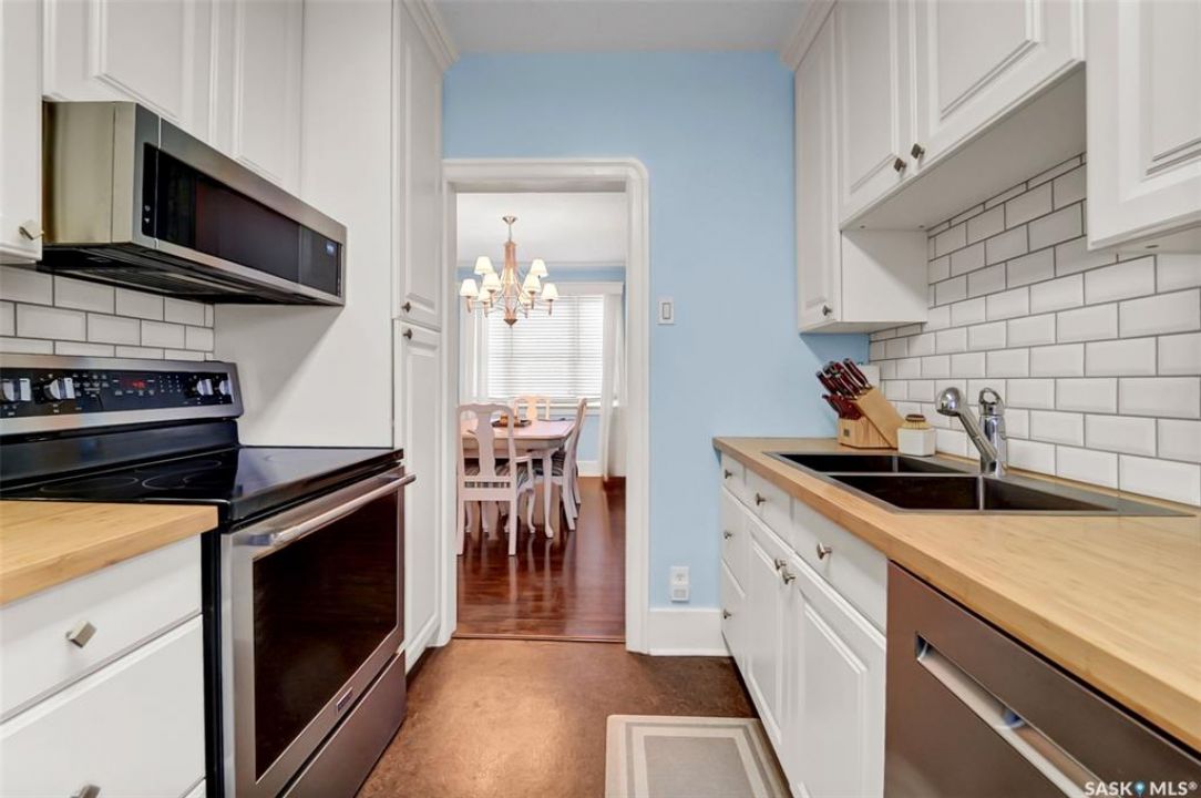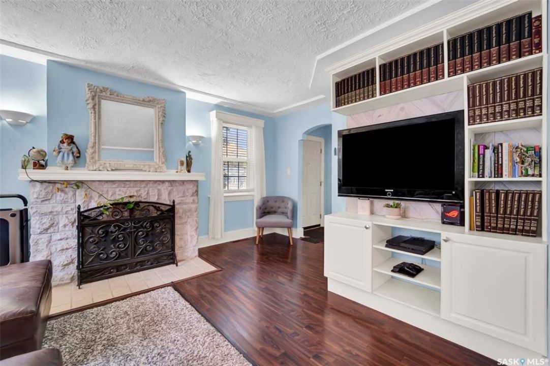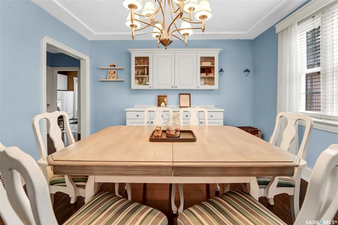 Welcoming investors and home ownership to this beautifully updated 1 � story home in Buena Vista! From the moment you step inside, you'll feel the perfect balance of modern updates and original character.Charming details such as arched doorways, original moldings, and ceiling accents set the tone, while the bright living room with its gorgeous original fireplace opens seamlessly into the spacious dining room, complete with built-in cabinets and serving area. The galley-style kitchen is both stylish and functional, featuring stainless steel appliances, white cabinetry, and a unique backsplash design. A large main-floor bedroom offers comfort and convenience. Practicality shines with the generous mudroom, complete with locker-style storage, and a laundry room located off the back entry with plenty of space for sorting and folding. Upstairs, you'll find two spacious bright bedrooms with charming sloped ceilings. The basement offers an LEGAL Suite , including a cozy family room, two additional large bedrooms, and a 3-piece bath. Step outside to enjoy the private backyard—perfect for relaxing, BBQs, or entertaining—with both deck and patio spaces, garage, 2 parking spots for both tenants and owner and one in the front for easy convenience. Located in one of Saskatoon's most desirable areas, you'll be within walking distance to Broadway, the river, and downtown. This home truly has it all—character, updates, and an unbeatable location!