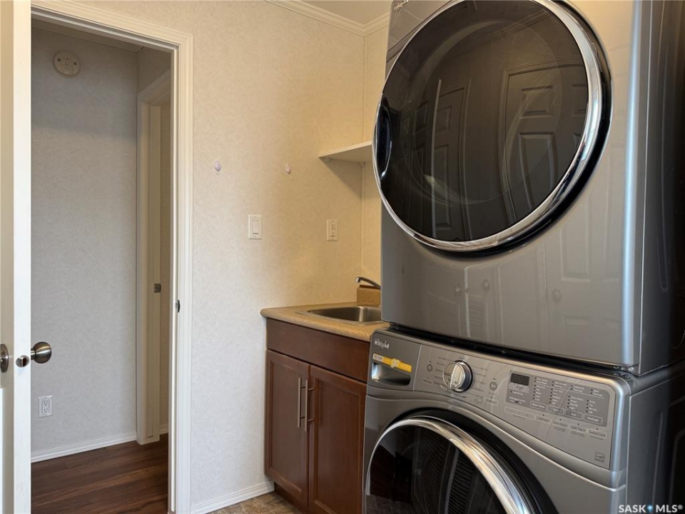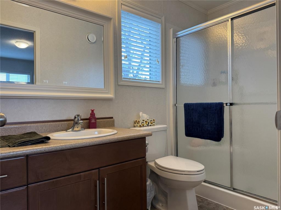 Welcome to 226 Hopp Street in Jansen! This home has a super functional layout with two bedrooms and a full bath at the front, and a spacious primary suite at the back complete with walk-in closet and en suite. You'll love the open concept living, dining, and kitchen area—tons of space, a gas fireplace to cozy up by, and patio doors that open to the deck. The kitchen's got loads of storage, including pot drawers and a walk-in pantry, plus the laundry and utility room are just off the back for easy access. Outside, there's room to roam with three lots totaling 125 feet across. The detached 26x44 garage is a dream—heated main area, workshop, lockable, and cold room. Tons of space to tinker, store, or just hang out. It's laid-back living with lots of extras. Come check it out!