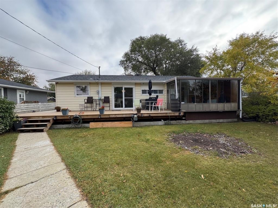 Beautifully Renovated Bungalow Backing Onto Park! Step into this1,050 sq ft bungalow that perfectly blends modern updates with a warm, inviting layout — and best of all, it backs directly onto a park and playground, offering peace, privacy, and green space right outside your door. Completely renovated from top to bottom, this home features a brand-new kitchen with sleek white cabinets, stylish countertops, and a contemporary tile backsplash. The dining area opens through patio doors to a spacious deck, perfect for entertaining or enjoying quiet morning coffee in your private backyard oasis. The sunroom off the primary bedroom provides the ideal spot to relax with backyard access, creating a tranquil retreat within your home. Downstairs, the fully finished basement offers a large family room, an additional bedroom, and a modern 3-piece bathroom featuring a walk-in tiled shower – perfect for guests or extended family. An oversized single detached garage provides ample storage or workshop space, with extra room for parking or hobbies. Located on a quiet street and just steps from green space and playgrounds, this home is perfect for families, downsizers, or anyone seeking comfort and style in a move-in-ready property. Don't miss this rare opportunity — schedule your showing today!