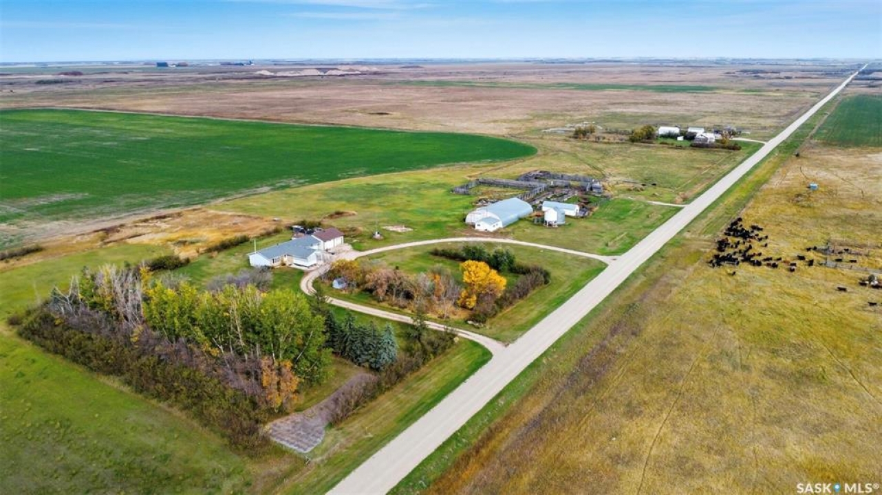 Discover the perfect blend of rural tranquility and modern living with this spacious 1,521 sq ft bungalow situated on 7 acres, under 10 min to Watrous and a short drive to Nutiren Lanigan and BHP Jansen mine sites. Ideal for families, commuters, or anyone seeking space and privacy in a convenient location. Step in the side door to a large mudroom that gives access to the attached single garage, basement or kitchen. Kitchen offers tons of workspace and storage - you'll love the custom oak cabinets! This well-maintained home offers 3 bedrooms, 3 bathrooms, and an open-concept layout that includes a bright kitchen, large living room, and dedicated dining area with patio doors that lead to a newly added covered deck. Basement offers additional living space with a wood fireplace and storage. Recent upgrades include new boiler January 2025,New septic line/RO System April 2025, upgraded electric panel 2021. Boiler heat is cost efficient, with floor heat in kitchen. Enjoy panoramic prairie views, mature yard site, and plenty of space for hobbies, gardening, or outbuildings. Access is easy via a well-maintained road, and services including well power, well and septic are in place.
