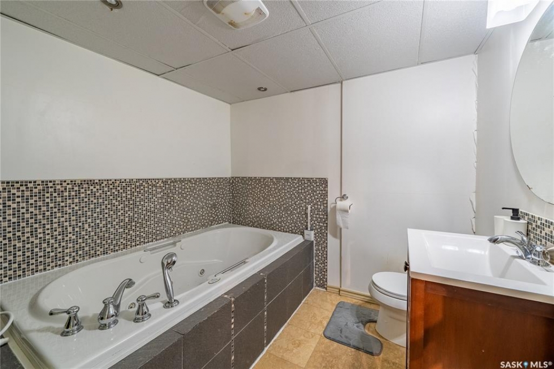 Welcome to 198 Thomson Avenue, a well maintained bungalow located in the quiet, family-friendly neighborhood of Glencairn Village. This charming corner unit is within walking distance to elementary and high schools, parks, walking paths, and convenient southeast Regina amenities. Tastefully decorated in neutral tones, it features 3 main-floor bedrooms and 2 full bathrooms, including a jet tub on the main and a jacuzzi tub in the basement. The bright living and dining area flows into an updated kitchen with modern cabinetry, granite countertops, and a designer sink. The fully finished basement offers a spacious family room, a versatile den (ideal as a guest room or office), a full bathroom, and a laundry/utility room with storage. Recent updates includes a new furnace (2022), a tankless water heater (2022), new washer (2020), newer dishwasher (2019), central A/C, and a composite deck leading to a fully fenced backyard—perfect for relaxing or entertaining. The basement is braced to engineer's specs, and the report is available. This move-in-ready home blends comfort, style, and location—book your private viewing today!