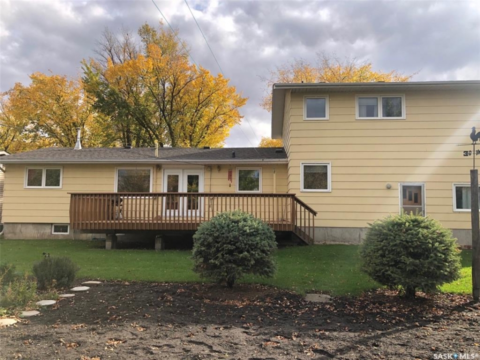 WELCOME TO 123 JOHNSON CRESCENT IN CANORA SK. LOCATION, SQUARE FOOTAGE, and QUALITY are just some of the many features that this spectacular home has to offer!. Upon arrival you are greeted to a splendid 1,768 square foot two-story split home fit for a large family! The inviting and majestic curb appeal offers a glimpse of the solidity and functionality of the property. The attached double car garage provides direct access into the spacious 5 bedroom and 3 bedroom home. The large foyer off the front door also adds plenty of space while leading to a most welcoming interior. A spacious quality kitchen!... boasting a staggering amount of cabinetry, ample counter space, a sunshine ceiling, patio doors to a large deck and state of the art appliances. This all will have you enjoying your morning coffee while overlooking the lush backyard from the pleasant dinning space. The well maintained interior and main floor carries onward to the cozy living room, 2 bedrooms, a 4 piece bath and main floor laundry and mudroom. Originally built in 1966 this home was remodeled with an addition in 1981 that provided and additional 2 bedrooms, 3 piece bath, added family space, and a handy space with potential for a kitchenette or wet bar! This added space is great for entertaining and the views from above are fantastic! This home has proven to check off all the boxes and it also includes a full finished basement with a third bathroom, more added rec space, a 5th bedroom, second laundry room, cold storage and the mechanical area. Recent upgrades include shingles, windows and a high-efficiency furnace making for an energy efficient home. The home displays pride of ownership from the inside and out! Including the large backyard with mature trees, landscaping, garden & lawn area, deck, storage shed, and back alley access with additional parking. Adequate 100 Amp electrical, Taxes $2,684/year, and an immediate occupancy can be facilitated. Call for more information or to schedule a viewing.