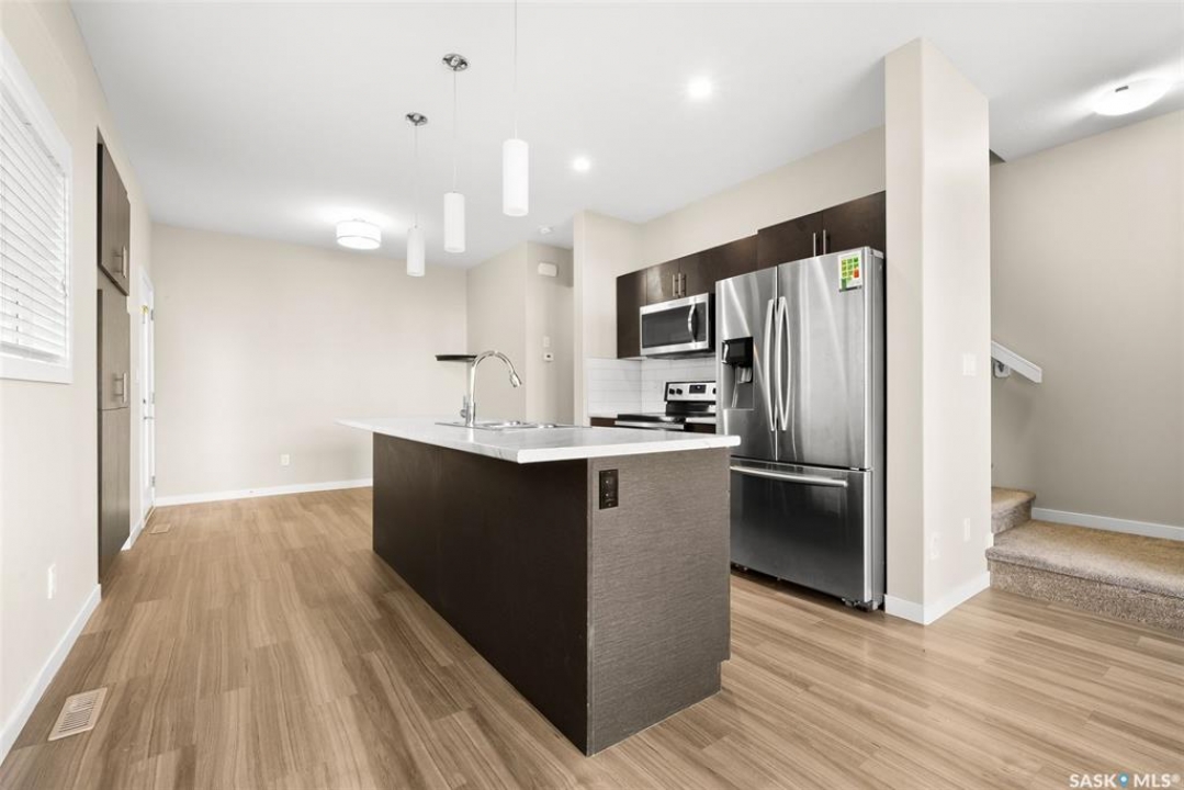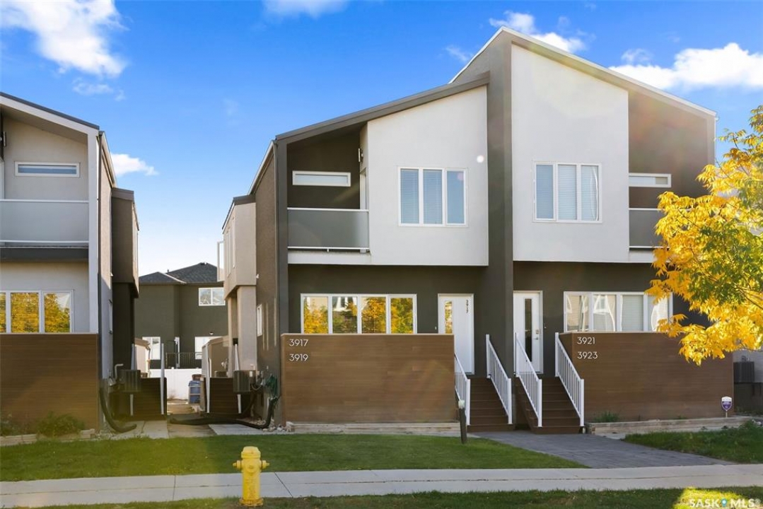 Welcome to 3917 James Hill Road, a modern and inviting two-storey townhouse located in the heart of Harbour Landing. This well-maintained home offers a functional and stylish layout with contemporary finishes throughout. The open concept main floor features a bright living room with large windows, a dining area, and a well-appointed kitchen complete with stainless steel appliances, rich cabinetry, tiled backsplash, and convenient island. Upstairs, the primary bedroom includes a walk-in closet and direct access to a spacious 4-piece ensuite bathroom. A dedicated laundry area add convenience for busy households. The fully finished basement provides a versatile rec room and a 4-piece bathroom. Outdoor living is easy with a private front patio and access to nearby parks, schools, and shopping in one of Regina's most desirable family-friendly neighborhoods. Parking is located in the shared detached garage. This property is part of a self-managed condominium. While there are no monthly condo fees, each unit owner contributes annually to condominium insurance (typically $1,000–$1,200 per year). In addition, the monthly SaskPower bill for the shared garage is approximately $10 per unit. A beautiful move-in ready option with excellent value in Harbour Landing!