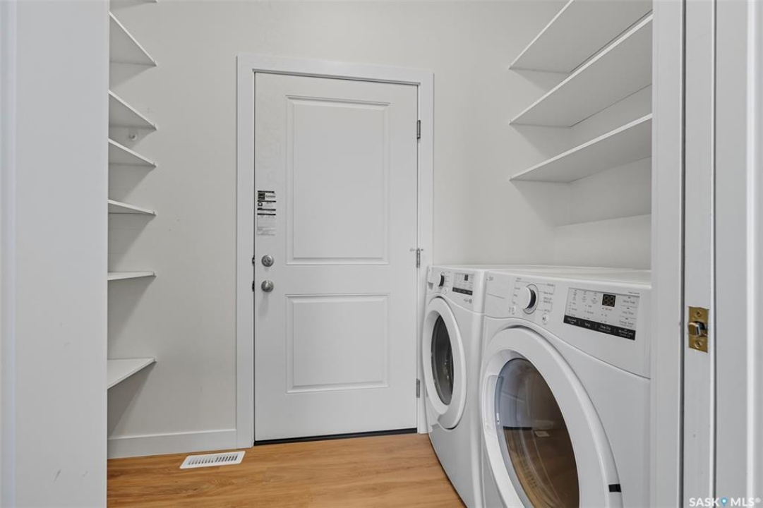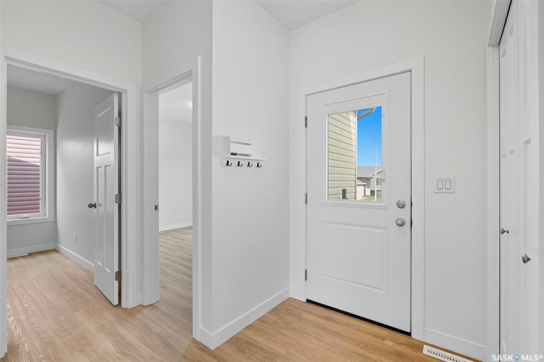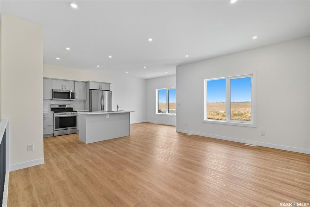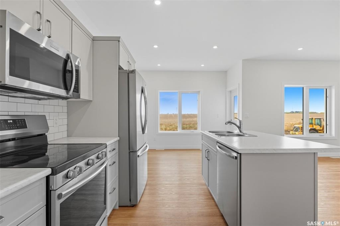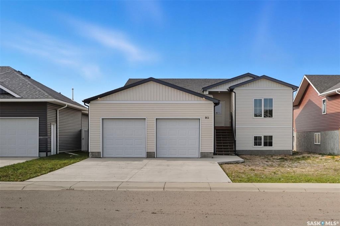 Welcome to 92 Diefenbaker Avenue in Hague, SK, built by a local developer and completed in 2024. Hague is 10 minutes past Warman and a 25-minute drive on a divided 4 lane highway to Saskatoon. Hague is vibrant community including a K-12 school, hockey and curling rink, spray park, outdoor rink, local grocery, hardware stores, pharmacy, daycare, and more. This home has 5 bedrooms, and 3 bathrooms. Upstairs, the open concept living area flows seamlessly from living room to dining area and kitchen, making it perfect for family gatherings and entertaining. Brand new basement development includes den, wet bar, 2 bedrooms, and 3 pc bathroom. Large windows downstairs provide abundant natural light. The house includes 1 year of mechanical, 4 years of water penetration, and 9 years of structural warranty coverage. In addition, all appliances include 4 years of comprehensive warranty. All basement development was completed with permits and inspected by TSASK and local building inspector. The backyard backs onto a field, providing beautiful sunsets and a sense of country living with the benefits of town amenities. A concrete driveway, automatic garage door opener, and direct access from garage to house provide convenient access. Schedule your showing today.