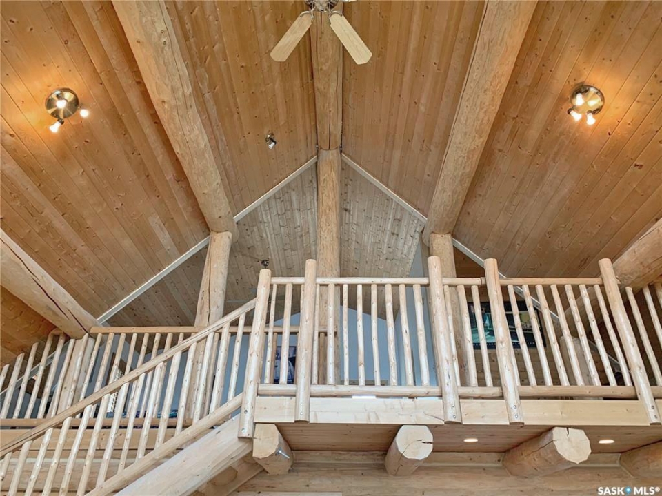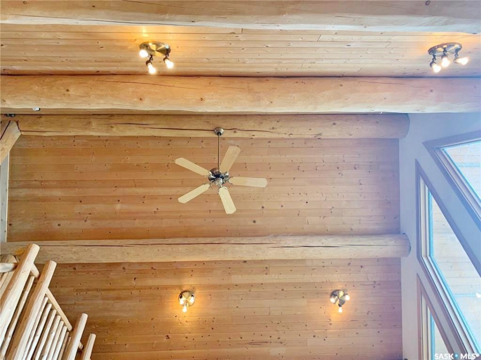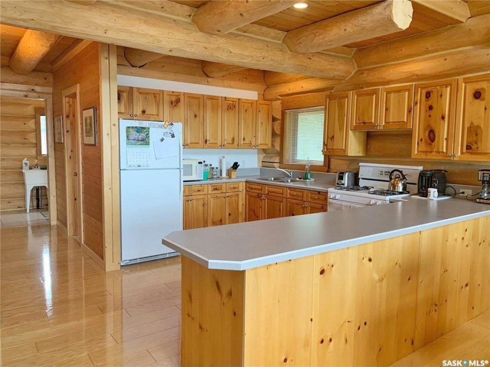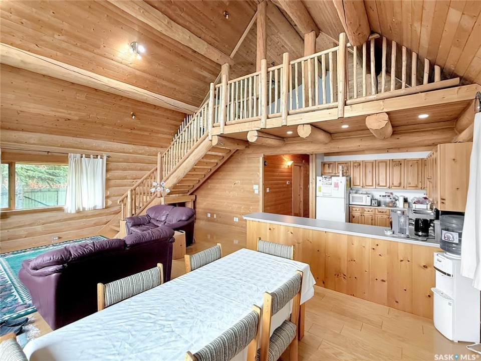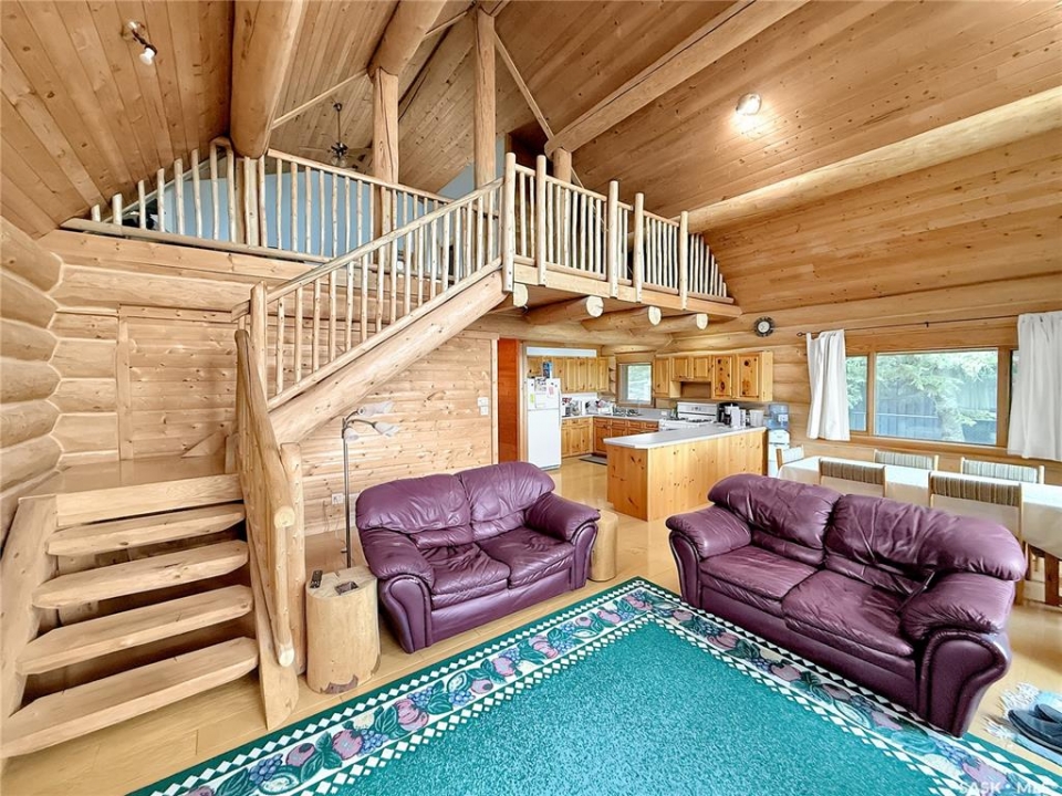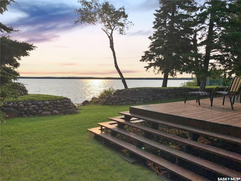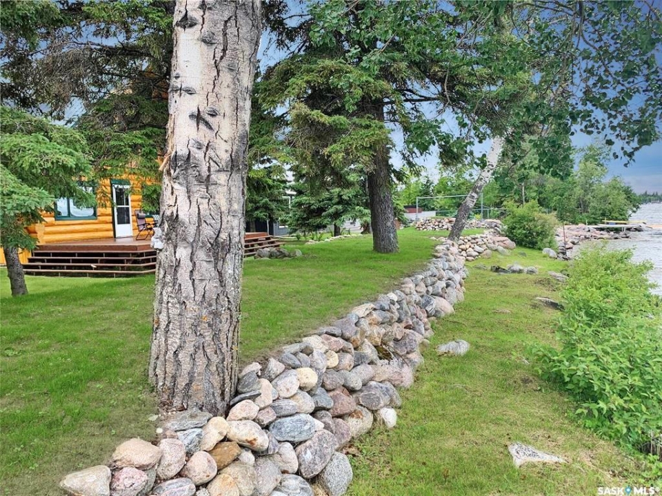 Dream Lakefront. Handcraft Log home situated on west shore of Candle Lake. This dream spot owns to the water edge and offers 90' of water frontage. The lot itself is 300'X90' (0.62acres) private, partially fenced and wonderfully landscaped. The maintained yard and house provides everything your looking for in a lakefront property. 1680sqft storey 1/2 features completely ope loft (20'X26) currently used as a huge master bedroom with 3pc ensuite and office nook...all with a great view of the water. The cust built log stair case opens to open concept living room, dinning room, with post & beam vaulted ceilings, providing lot of great natura light and maximizing your view. Bright open kitchen offers lots of cupboard space, island/breakfast nook, gas range all showcasing th waterfront. Main floor features another nice size bedroom, utility room, mudroom/porch and 3pc bathroom. Large back deck with ber and NG BBQ hook up. The front door open onto a lakefront oversized deck, taking full advantage of the morning sunrise. For all your there is a oversized detached double garage (24'X34'). The yard has plenty of room for additional waterview garage/loft. Well & Sept triple pane window throughout, come check out the value of this gorgeous lakefront property. Dock & Lift Permit transferable.