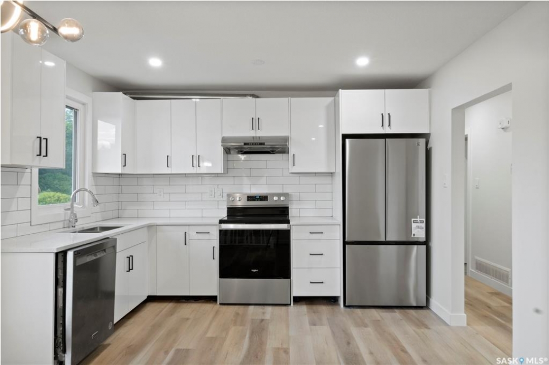Welcome to 1336 McNiven Avenue in the desirable Hillsdale neighborhood, a newly renovated bungalow offering 5 bedrooms, 3 bathrooms, a brand-new detached garage, and a spacious 6,235 sq. ft. lot. The main floor features a bright living room, dining area, and modern kitchen with quartz countertops, tile backsplash, hood fan, and updated finishes, along with a primary bedroom complete with 2-piece ensuite, two additional bedrooms, and a 4-piece bath, all finished in durable luxury vinyl plank flooring. The basement includes a large recreation room ideal for family gatherings or a home theatre, two good-sized bedrooms, a 4-piece bath, and laundry in the utility area, with cozy carpet throughout the living spaces. Added highlights include central air conditioning for year-round comfort, a side entrance, and close proximity to the University of Regina, Campbell Collegiate, Wascana Centre, and easy access to transit. With its prime location, modern upgrades, and functional layout, this Hillsdale home is a must-see—don't miss out on booking your viewing today!