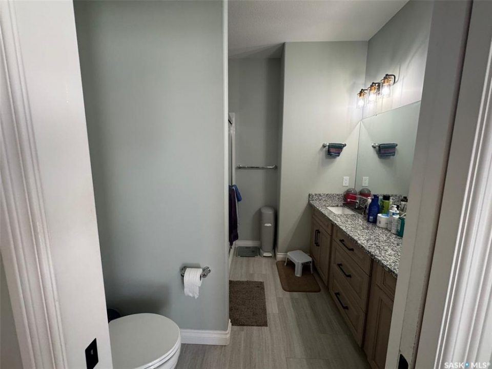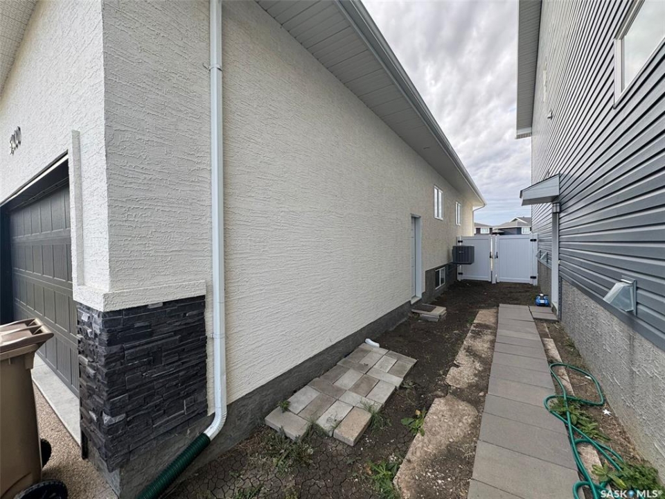 Welcome to 5400 E Boyer Bay! a beautifully maintained bungalow in the desirable Greens on Gardiner community. A front veranda adds warm curb appeal & welcomes you into a beautiful home where natural light fills each room. Built in 2022 with signature specs by Crawford Homes, this 1,337 sq ft home features a bright and functional open-concept layout with vaulted ceiling, perfect for modern living. The main floor showcases luxury vinyl plank flooring throughout and a seamless flow between the kitchen, dining, and living area with electric fireplace. The contemporary kitchen boasts sleek finishes, ample maple cabinetry, granite countertops, tile backsplash, and is natural gas–ready, offering flexibility for future stove upgrades. Stove, fridge and dishwasher can be operated with the help of wifi through app. Backyard can be accessed through kitchen and master bedroom. Three spacious bedrooms include a primary suite with a 4-piece ensuite and walk-in closet. Both the bathrooms have maple cabinets with granite countertops . The additional main bath is tastefully finished with vinyl flooring and modern fixtures. A double attached garage with direct entry provides ample parking and storage, with a natural gas line roughed-in for future heating upgrades, an exposed aggregate driveway, and a convenient side door for extra accessibility. Additionally CAT 5e network wiring throughout for modern connectivity. The basement is framed, insulated, and poly-ed, with rough-in plumbing and electrical in place—would not take much to complete with your own ideas. Fenced with a 12ft gate in the back that gives access to the back alley and opens to RV parking options. Situated on a 7,074 sq ft lot in a family-friendly neighborhood close to parks, walking paths, and schools, this home combines comfort, space, and an excellent location. A must-see!