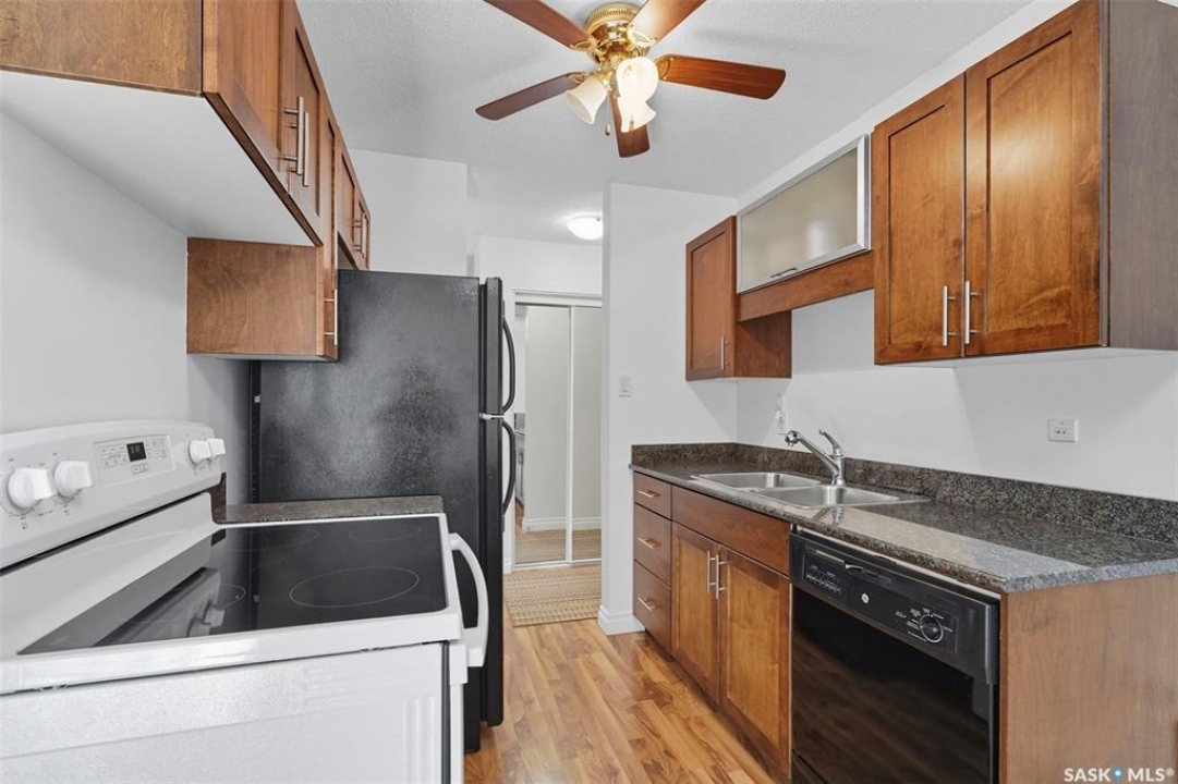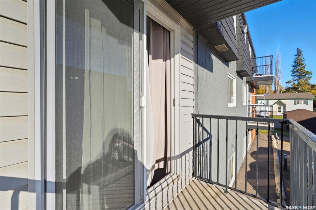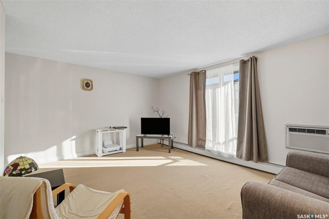 Welcome to Unit 9 – 115 Acadia Drive, beautifully RENOVATED 1-bedroom, 1-bathroom condo in the heart of West College Park. This bright, south-facing unit offers a spacious living room filled with natural light and access to a private balcony. The walk-through kitchen features updated maple cabinets, granite countertops, and newer appliances. A good-sized bedroom, 4-piece bathroom, and a convenient laundry/storage room with stackable washer and dryer complete this functional floor plan. Other upgrades and features include fresh paint (2023), new stove (2025), newer toilet and bathroom fan (2023), and wall-mounted A/C unit. The building itself has been well maintained with newer boiler system, windows, and roof. This second-level condo also comes with one electrified surface parking stall. Ideally located within walking distance to schools, parks, 8th Street shopping, and all amenities, with easy access to McKercher Drive and the University of Saskatchewan — a fantastic home in an unbeatable location!