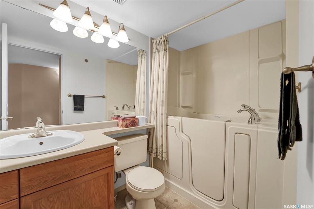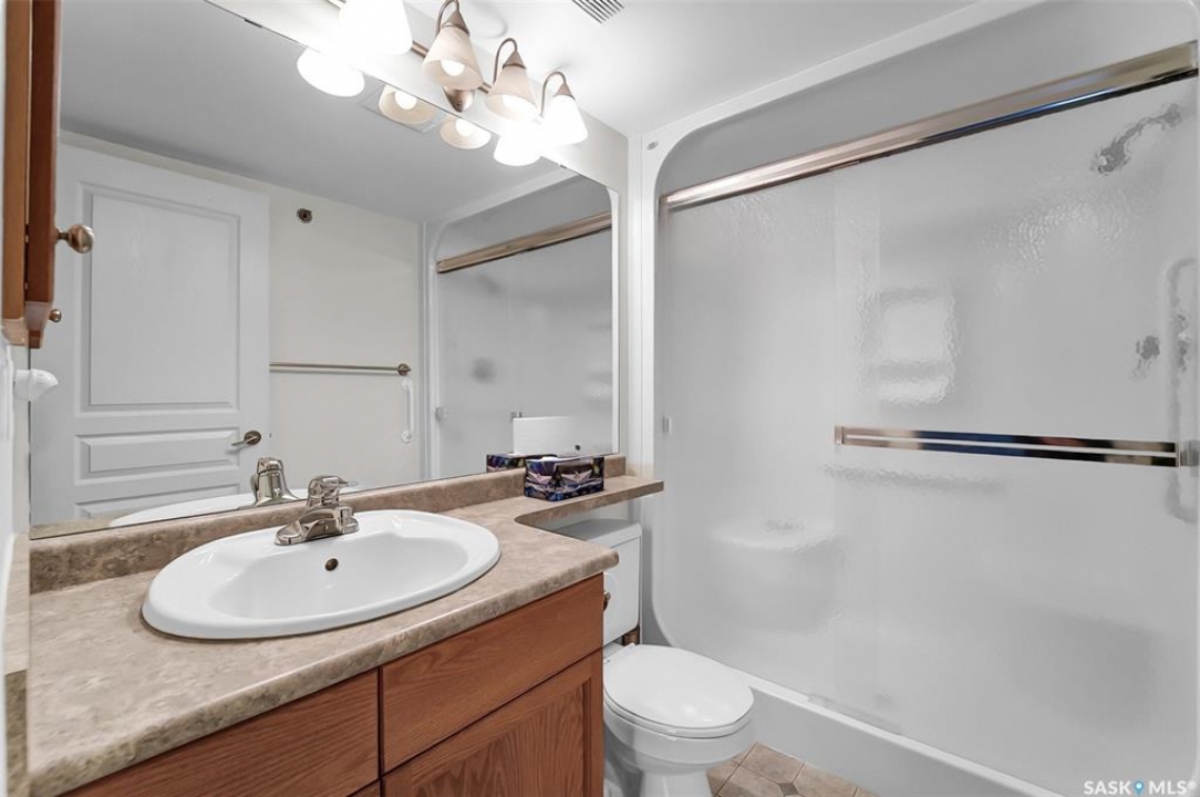Welcome to the Fremai building, 1180 sqft corner unit with 2 bedrooms, den, 3 piece ensuite, plus a 4 piece bath with Safe Step Walk ln Tub, in suite laundry, kitchen island, central air conditioner and dishwasher replaced in 2025, central Vac spacious deck, gas barbecue hook up,2 underground parking stalls, storage unit in front of parking spot, amenities include room, exercise room and wheel chair accessible. North facing corner unit. Air condition and dishwasher replaced in 2025. Unit includes Two underground parking stalls L-7, 22, storage unit in front of parking spot.Great Location: Across the street from Market Mall, close to all amenities including transit and parks. This unit shows very nice and is in excellent condition. Condo fees include utilities except electricity.