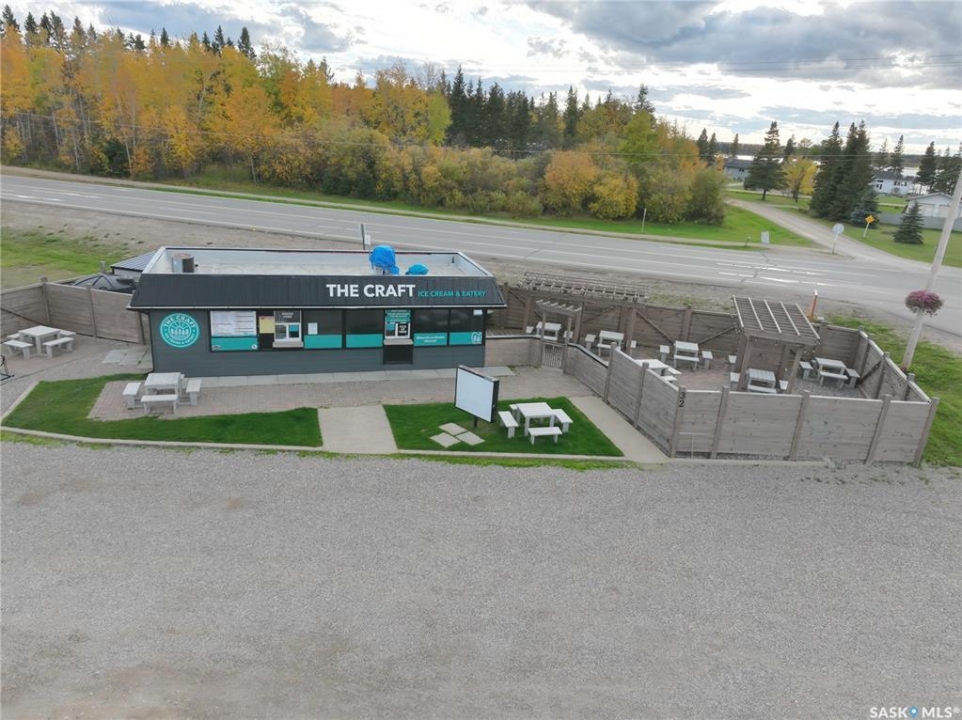 Thriving Candle Lake Favourite! Turn-key, high-traffic seasonal business with that inviting southern-style outdoor eatery vibe — serving up artisan craft ice cream and a full comfort-food menu everyone loves. Perfectly located in the heart of Candle Lake, just steps from Waskateena Beach and surrounded by busy trailer parks and cabins in a sought-after Main Street location. The .28-acre lot (116' frontage) offers incredible visibility and room to grow. The 526 sq. ft. building features an order/pick-up window, fully equipped kitchen, prep area, Taylor ice cream machine, fryers, and modern commercial equipment. Includes staff bathroom, storage room, and powered storage shed. Completely renovated top-to-bottom, truly turn-key and ready for the next owner. Updates include Hardie board/metal siding, concrete work, patio seating, premium signage, powered menu board, upgraded lighting, and exterior sound system. Additional features: LG commercial A/C, water tanks, and Square POS for smooth, modern operations. A rare opportunity to own a beloved local landmark with proven success and exceptional potential to expand and thrive in beautiful Candle Lake!