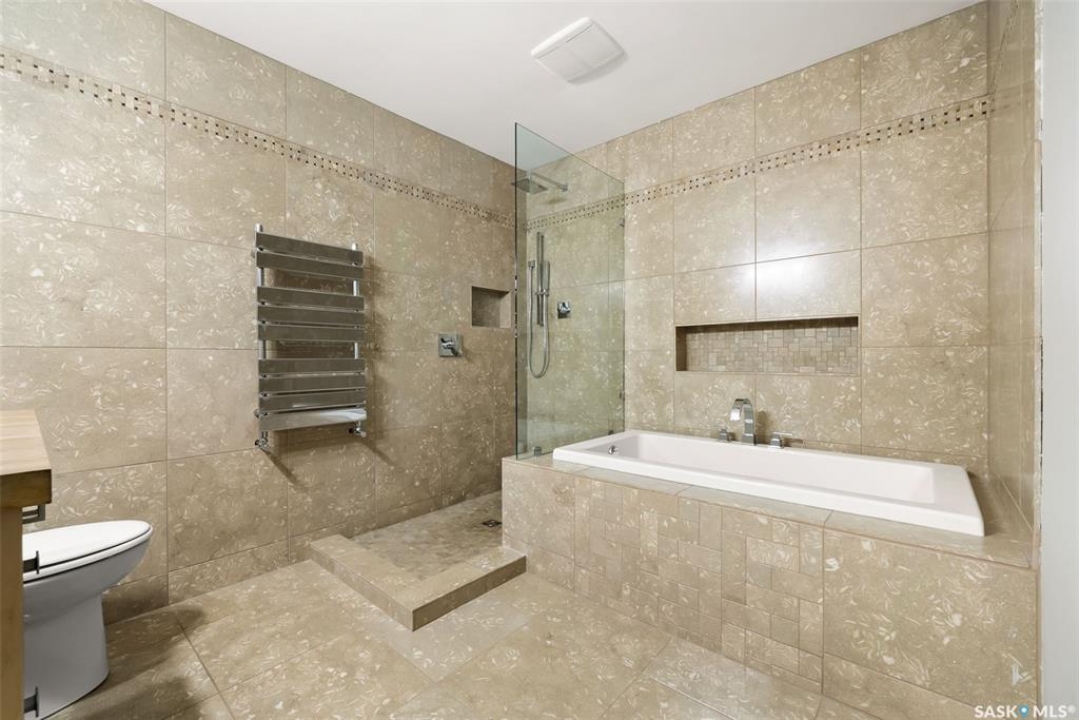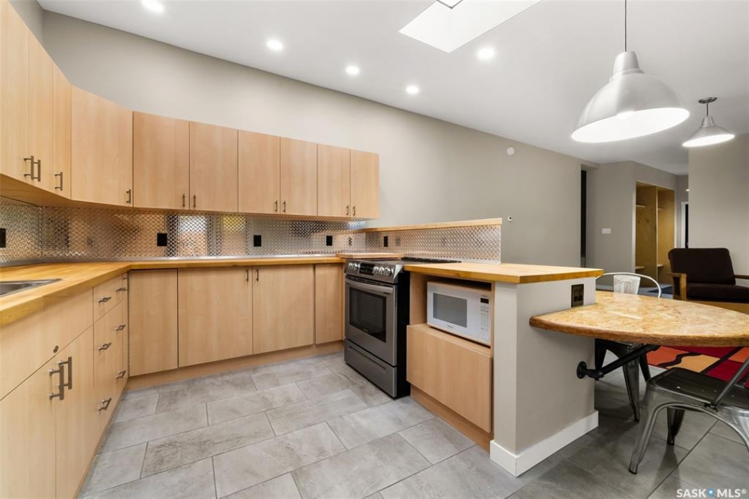 Welcome to 118 Langley Street—a beautifully renovated Hillsdale home just blocks from the University of Regina. Thoughtfully designed and extensively upgraded, this property offers exceptional versatility for families, investors, or anyone seeking a mortgage helper. Featuring two modern kitchens, seven bedrooms, and four bathrooms, this home is ideally suited for multi-family living or generating rental income, with the basement alone having previously rented for $3,200 per month. Home is heated entirely by in-floor heat divided into four zones and complemented by an HRV system (2012) and 200-amp electrical service. Inside, you'll find handcrafted built-ins and stunning woodwork by the owner, a skilled carpenter. The main floor features refinished hardwood, Benjamin Moore paint, a feature wall with custom shelving, and large PVC windows. The open-concept kitchen offers abundant cabinetry, stainless-steel appliances, and generous counter space. 3 bedrooms and a beautifully reno'd 4-piece bath complete the level, featuring limestone tile, a towel warmer, soaker tub, and custom floating vanity. Rear addition includes 2nd kitchen with butcher block counters, two skylights, a bright living area with built-ins, a 2-piece bath with washer/dryer, and a functional mudroom with storage. Fully redone basement offers a re-poured slab, interior weeping system, sump pump, and four bedrooms with two 3-piece baths. Enjoy a private landscaped yard with underground sprinklers and 24x26 heated garage (2013) used as a workshop with large windows and ample cabinetry. Acrylic stucco exterior (2023) with rigid insulation and updated PVC windows adds style and efficiency. Extensive upgrades include: sewer and backflow (2008), underground power (2009), insulation, windows, stucco (2010/2023), kitchen and boiler (2012), garage (2013), shingles (2011), limestone tile bath (2015), paving stone driveway (2023), appliances (2020), and more. Full list of features available! Ask your REALTOR �