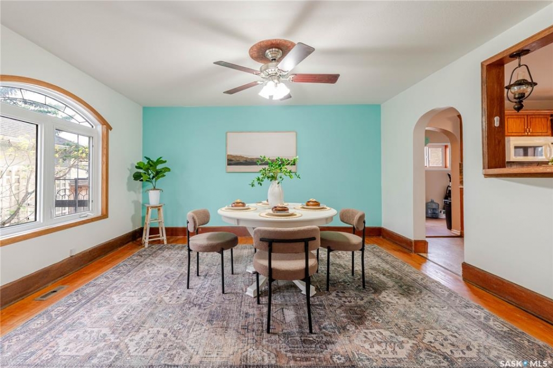 This character home, nestled on a quiet, tree-lined street near schools and downtown Moose Jaw, offers a timeless blend of charm and practical living. Throughout the home, original hardwood floors, a striking Victorian staircase, and vaulted ceilings create a warm and inviting atmosphere. The bright living and dining rooms boast large picture windows, while the kitchen features generous counter space with a breakfast bar. Additional main-floor highlights include a convenient laundry area, a 2-piece powder room, and an enclosed front veranda. Outside, the spacious backyard is perfect for relaxation or entertaining, featuring a gazebo, fire pit, and garden space. Upstairs, you'll find three bedrooms, a full bathroom, and a versatile landing area ideal for a home office or reading nook. The basement adds extra living space with a family room and another 2 piece bathroom. Completing the property is a double detached garage with alley access and plumbing roughed in for in-floor heat. Offering a rare combination of character and convenience, this home is ready for you to make it your own. Book your showing today!