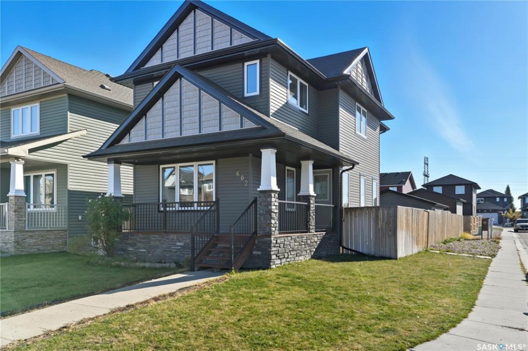 Welcome to 602 Kolynchuk Court, stunning corner house in a Stonebridge neighborhood. 2 story home features 3 bedrooms, 1-2pc bath,1- 3pc ensuite bath , 1-4pc bath. 1396 SqFt. Bright north facing living room, spacious kitchen with cabinets, stainless steel appliances, pantry and island. Triple pane windows. Carpet flooring on 2nd floor. Master bedroom has large walk in closet, 3 pc ensuite with shower. Common 4pc bath. Linen closet. Walk in closets in 2nd and 3rd bedrooms. Central Vacuum roughed-in on main and 2nd floor. Laundry in basement. The home has Central air conditioning. Composite Deck in the backyard. Yard is fully fenced with sprinklers at front and back and a double detached garage. This home is move in ready. School-bus stop close to house. PCDS form and Surveyor certificate are available in supplement. Call your Realtor today for viewing!!