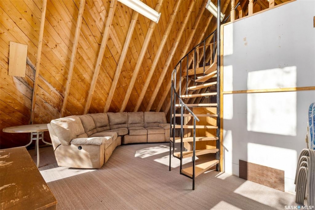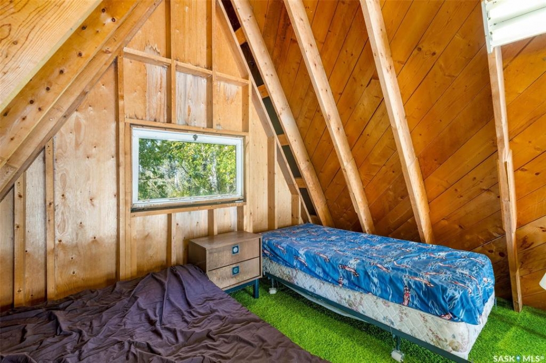 Have you been dreaming of a lakefront cabin and summer nights around the campfire but need something that won't break the bank? Lakefront Lot 5 at Lake Charron Regional Park might be exactly what you're looking for! This charming 600 sq. ft. lakefront cabin, built in 1984, features a unique A-frame design and a waterfront deck complete with a firepit area perfect for enjoying peaceful evenings with family and friends. Located just 13 km east of Naicam, SK, you'll be close to shopping amenities including a grocery store, meat shop, and the beautiful Naicam Golf Course, a welcoming 9-hole course ideal for the whole family. Lake Charron Regional Park offers a tranquil setting with plenty of amenities, including numerous campground sites, a large group pavilion, an upgraded shower and bathroom facility, and a playground for the kids. Inside the cabin, you'll find an open-concept layout with a spacious living room that flows into an eat-in dining area and functional kitchen. The main floor also features a large bedroom space and a designated area for a bathroom. Upstairs is a loft area with a couple extra beds, the perfect place for the kids to stay! While the cabin currently has no sewer or water services, a bathroom area is framed in and ready for future installation if desired. This is your opportunity to own an affordable lakefront getaway in a family-friendly park setting. Come take a look today!