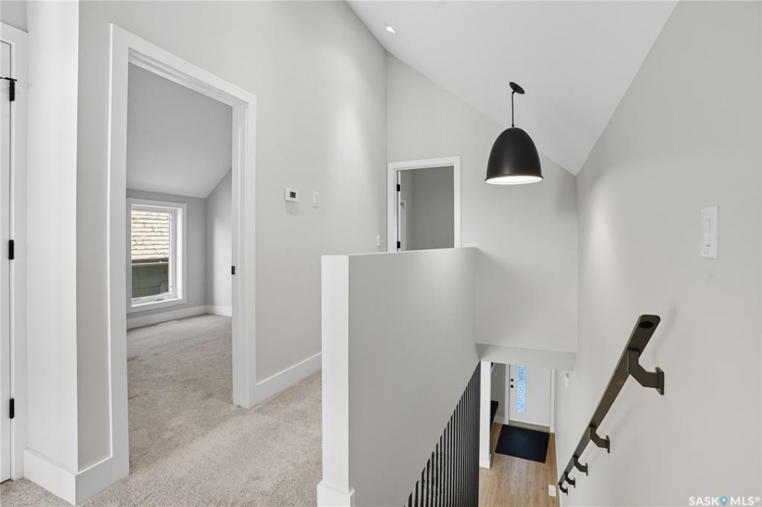 Very modern design and decor throughout. Numerous high end features in this home not usually seen in Caswell Hill. The main floor features a stunning open concept with a beautiful kitchen showcasing a large island with quartz countertops, stainless-steel appliances, a modern tile backsplash, and an abundance of storage. The bright living area is framed by expansive front and rear windows that flood the space with natural light, creating an inviting and airy atmosphere. Upstairs, you'll find three spacious bedrooms with vaulted ceilings. The primary suite includes a walk-in closet and a gorgeous four-piece ensuite. The secondary bedrooms are generously sized, complemented by an additional four-piece bath and convenient second-floor laundry. The lower level offers a fully developed suite mirroring the main floor's modern style. It includes its own private entrance, laundry, and heating system—ideal for guests, extended family, or additional revenue.Situated in the vibrant community of Caswell Hill, this modern home backs directly onto the area's new economic and cultural hub, which is already well underway.