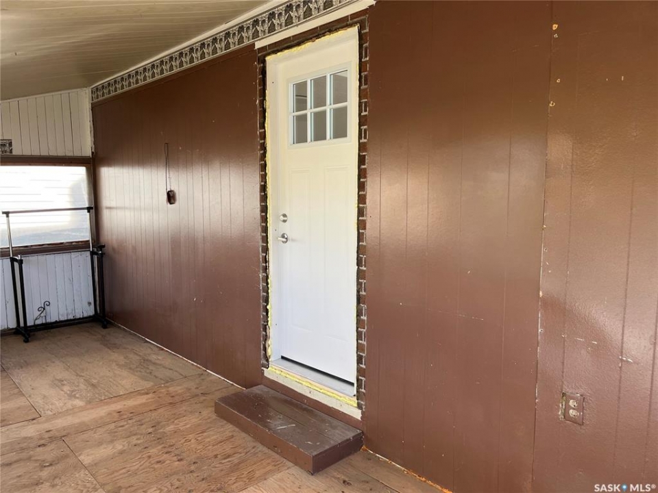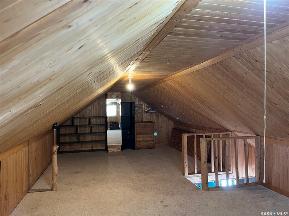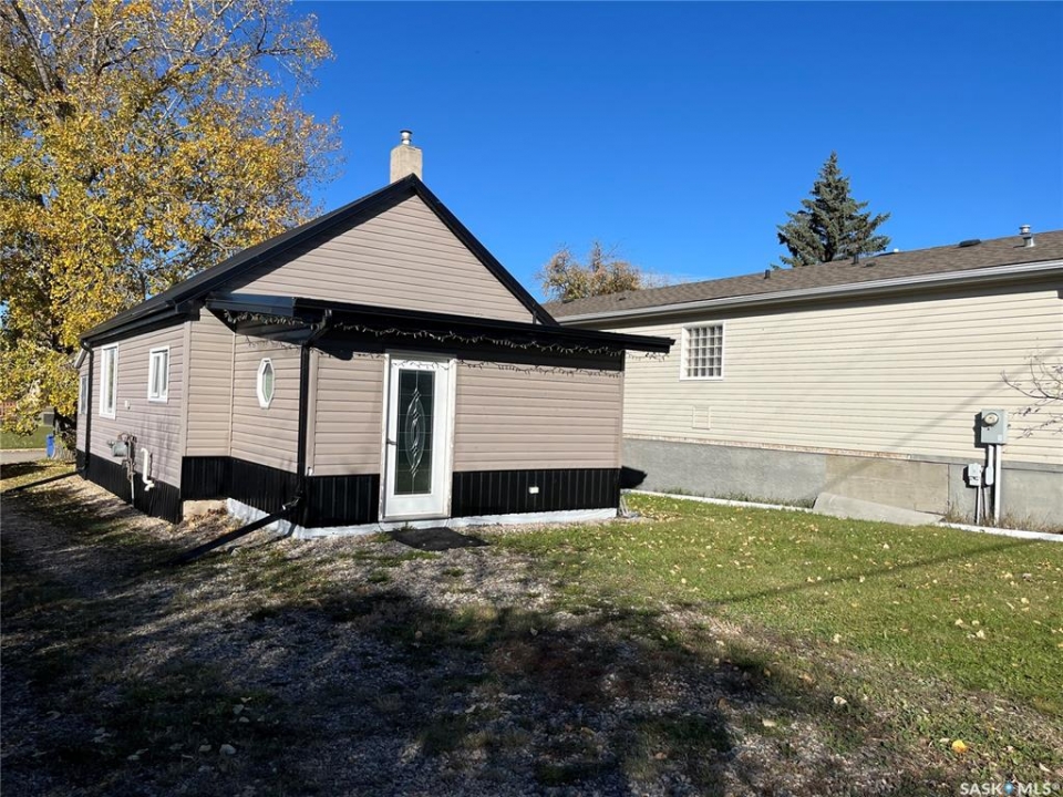 This charming 1 1/2 Storey home is updated and ready for it new owners! If offers a sunroom that faces west. The back of the house you walk into the large mudroom/laundry area. This area is perfect for all extra storage space. The kitchen has lots of cupboards and opens up to the living room and dining area. This area is spacious. There is a main floor bedroom and 4 piece bathroom with tile surround and floor. The upstairs is a loft and could offer additional bedrooms or a great added living space. The outside yard is treed and has a storage shed and drive through lane. Don't miss out on this charming property!